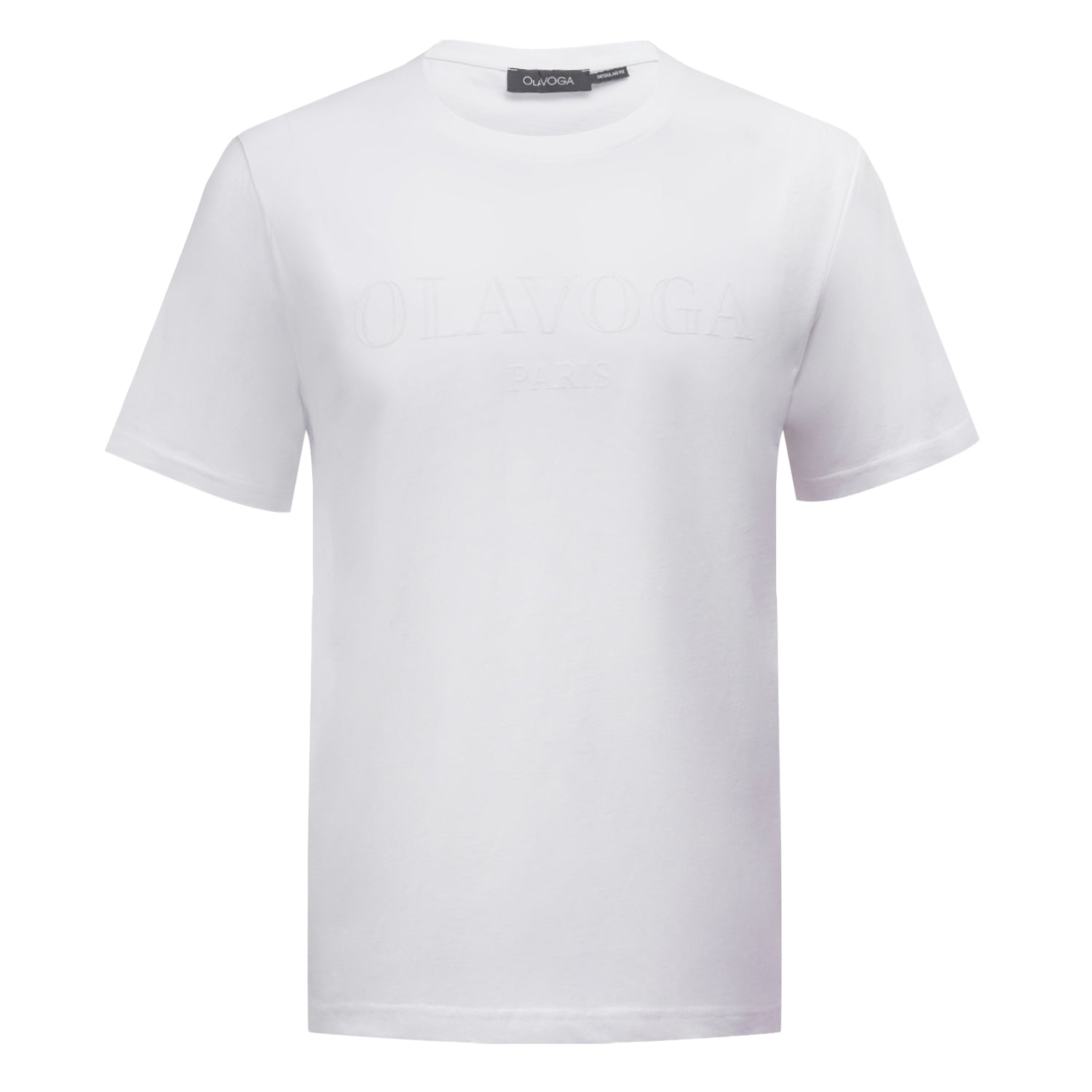 Front finished with subtle tonal OLAVOGA logo with elegant PARIS lettering detail.