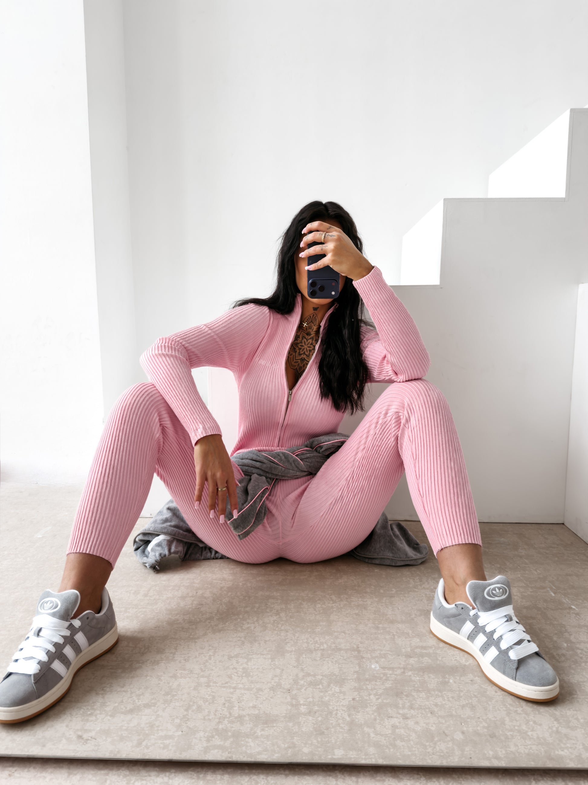Perfectly fitted casual jumpsuit with a ribbed structure.