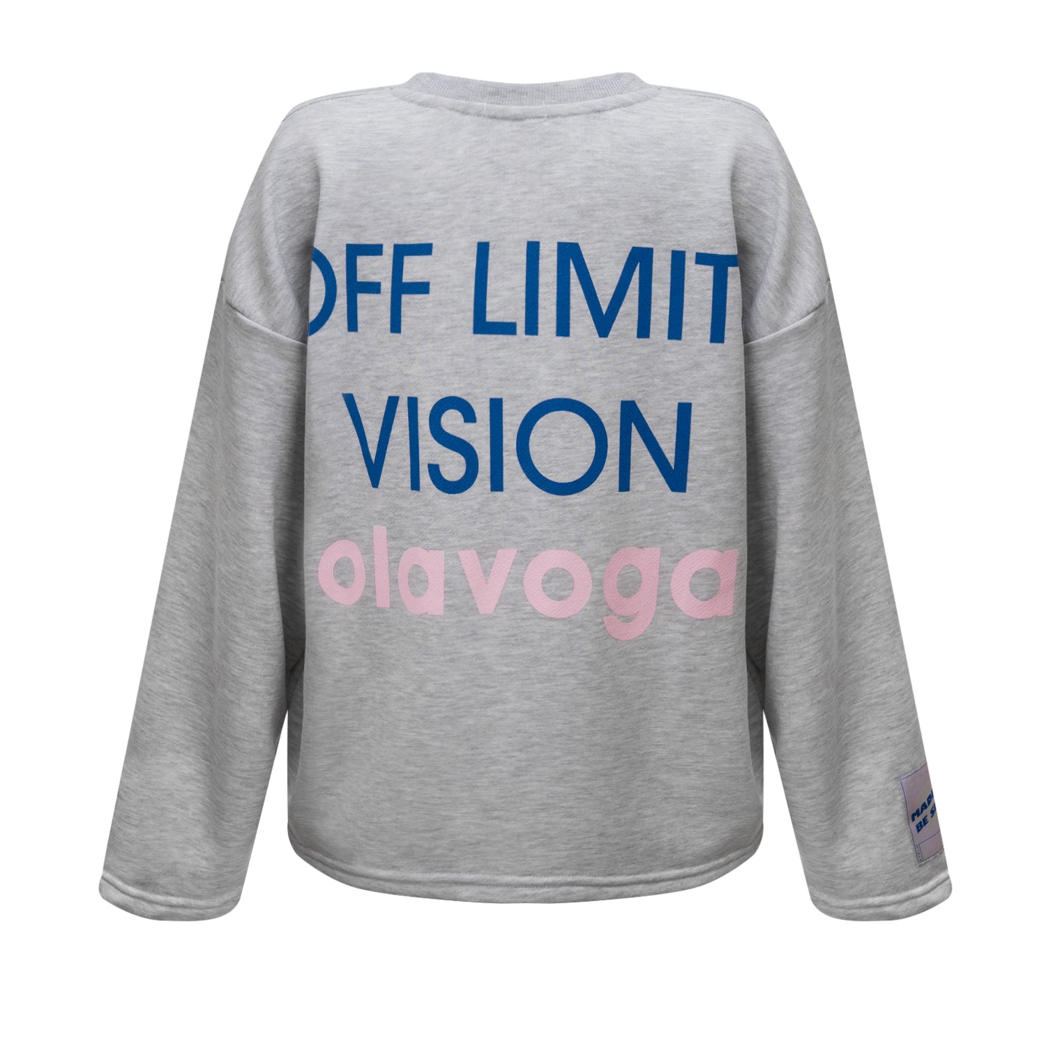 Casual sweatshirt with a relaxed fit, long sleeves and a classic crew neckline. Made from soft, pleasant-to-touch knit fabric for everyday comfort. The front features a minimalist OLAVOGA logo with a graphic element, while the back is finished with a bold “OFF LIMITS VISION” print. A branded patch on the sleeve completes the design.