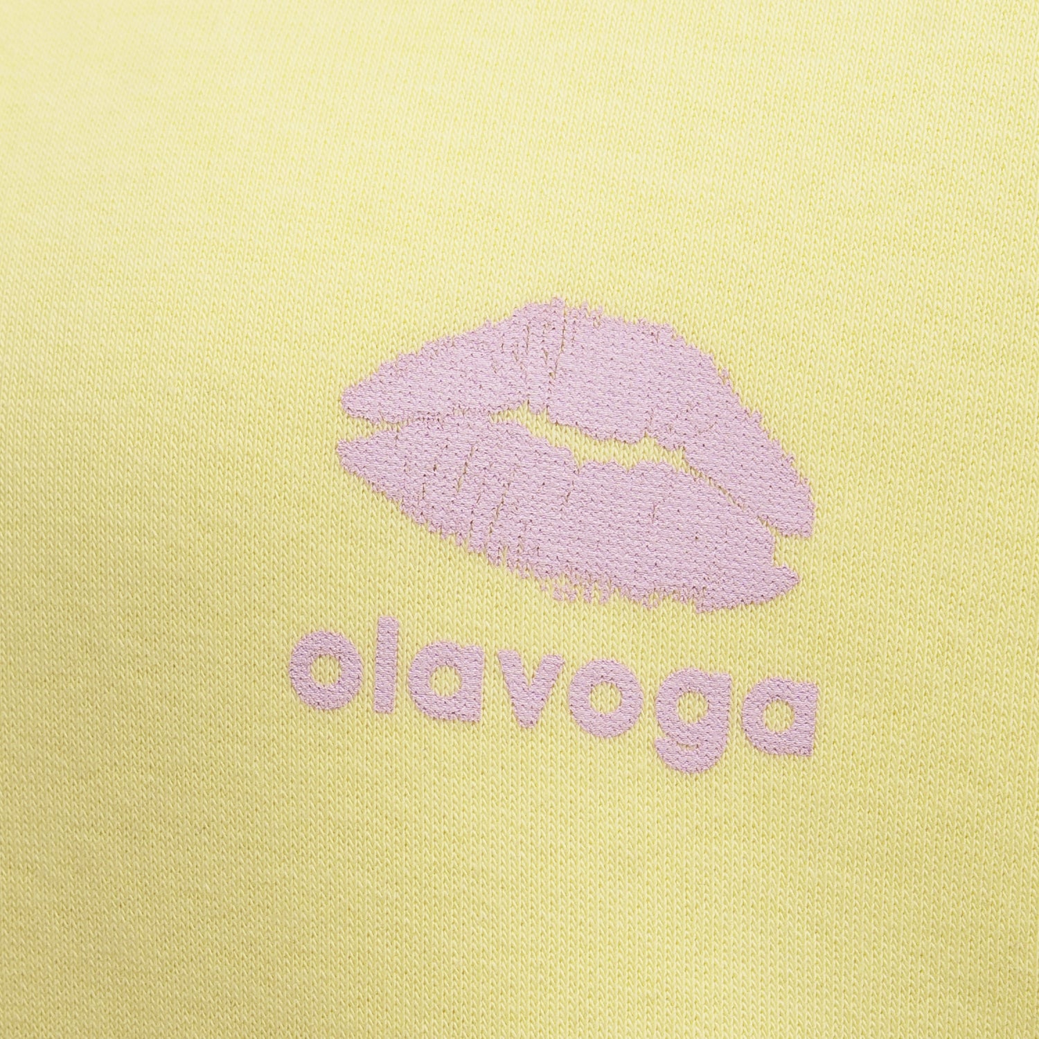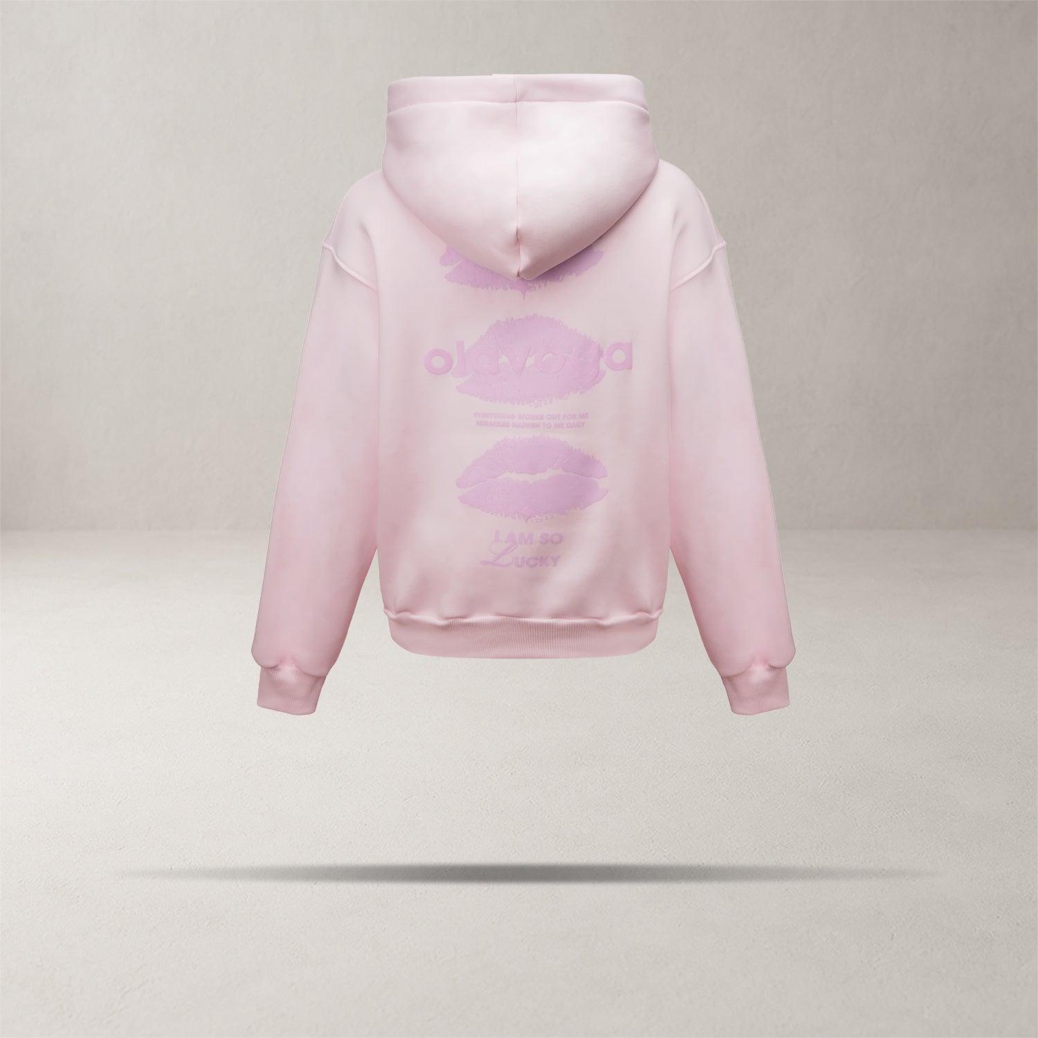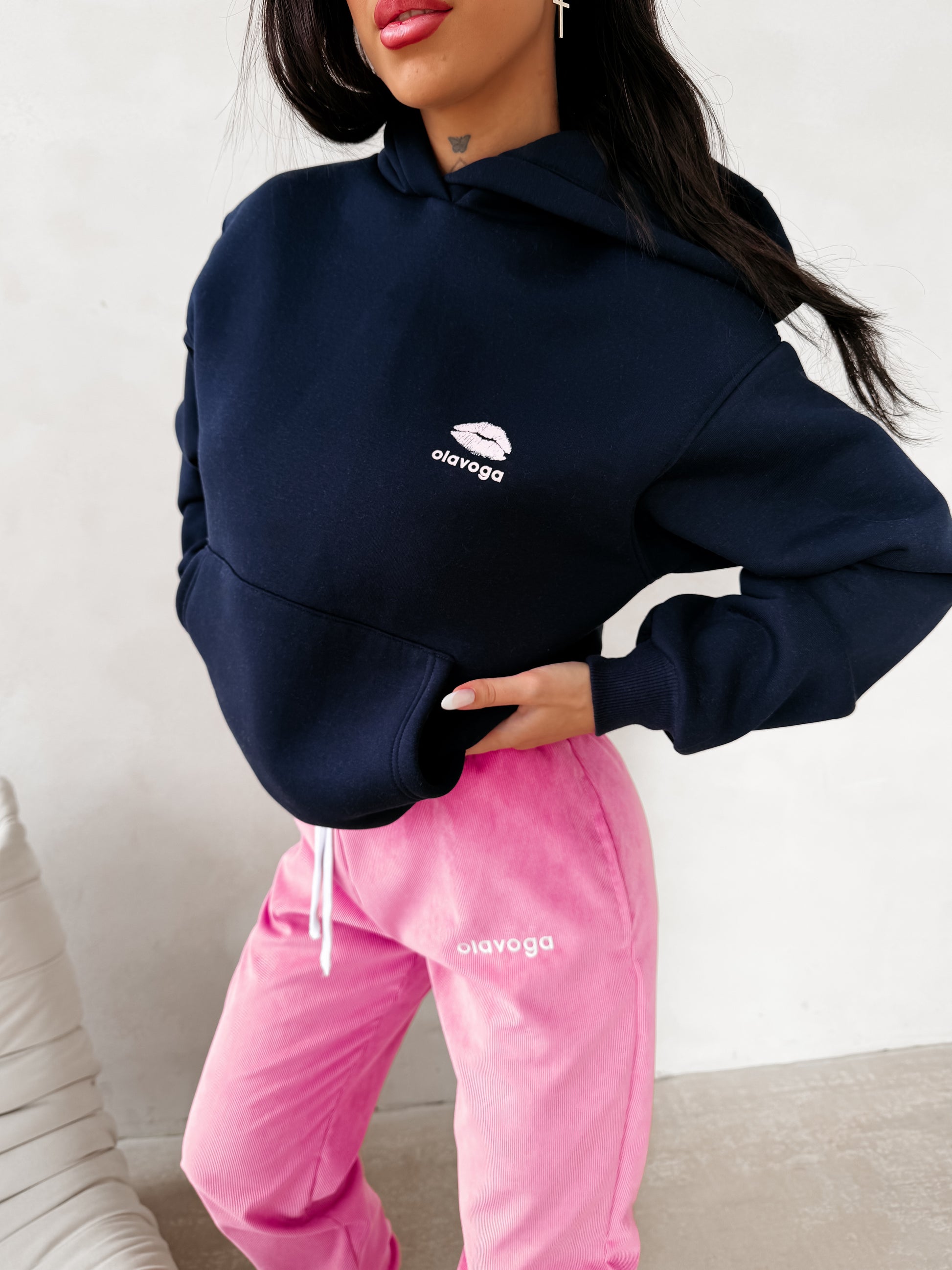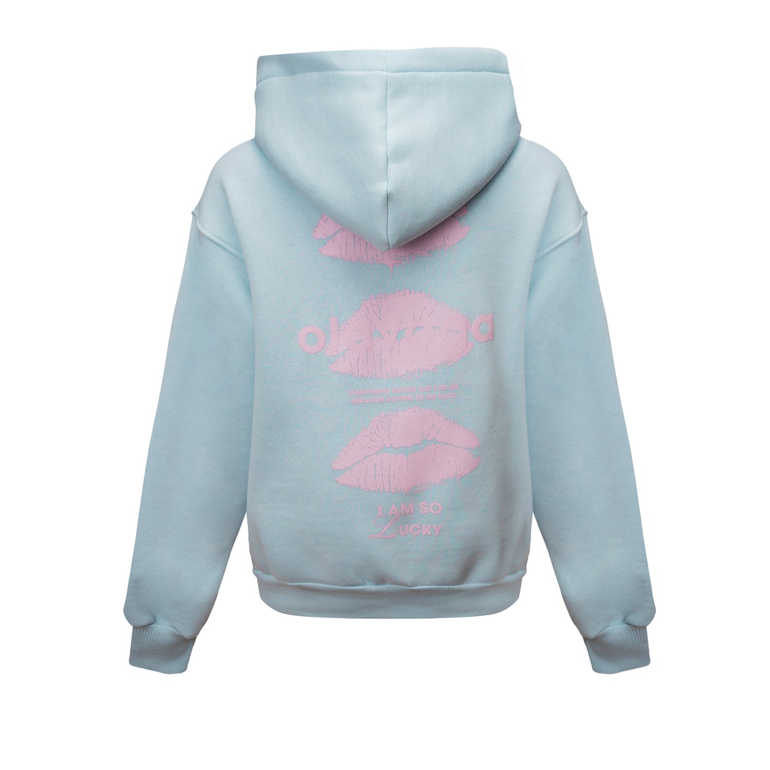 Key features: hood, comfortable fit, soft knit fabric, lips graphic on the back, slogan print, OLAVOGA branding, casual statement style.