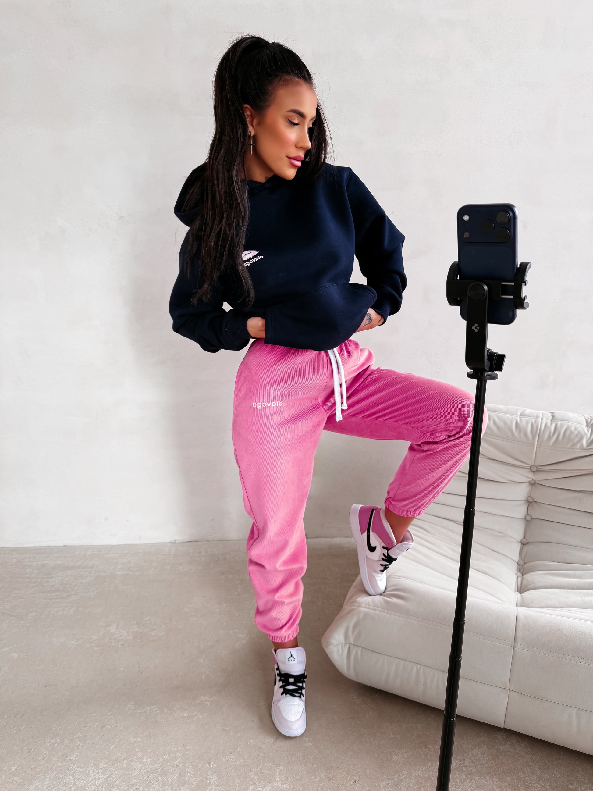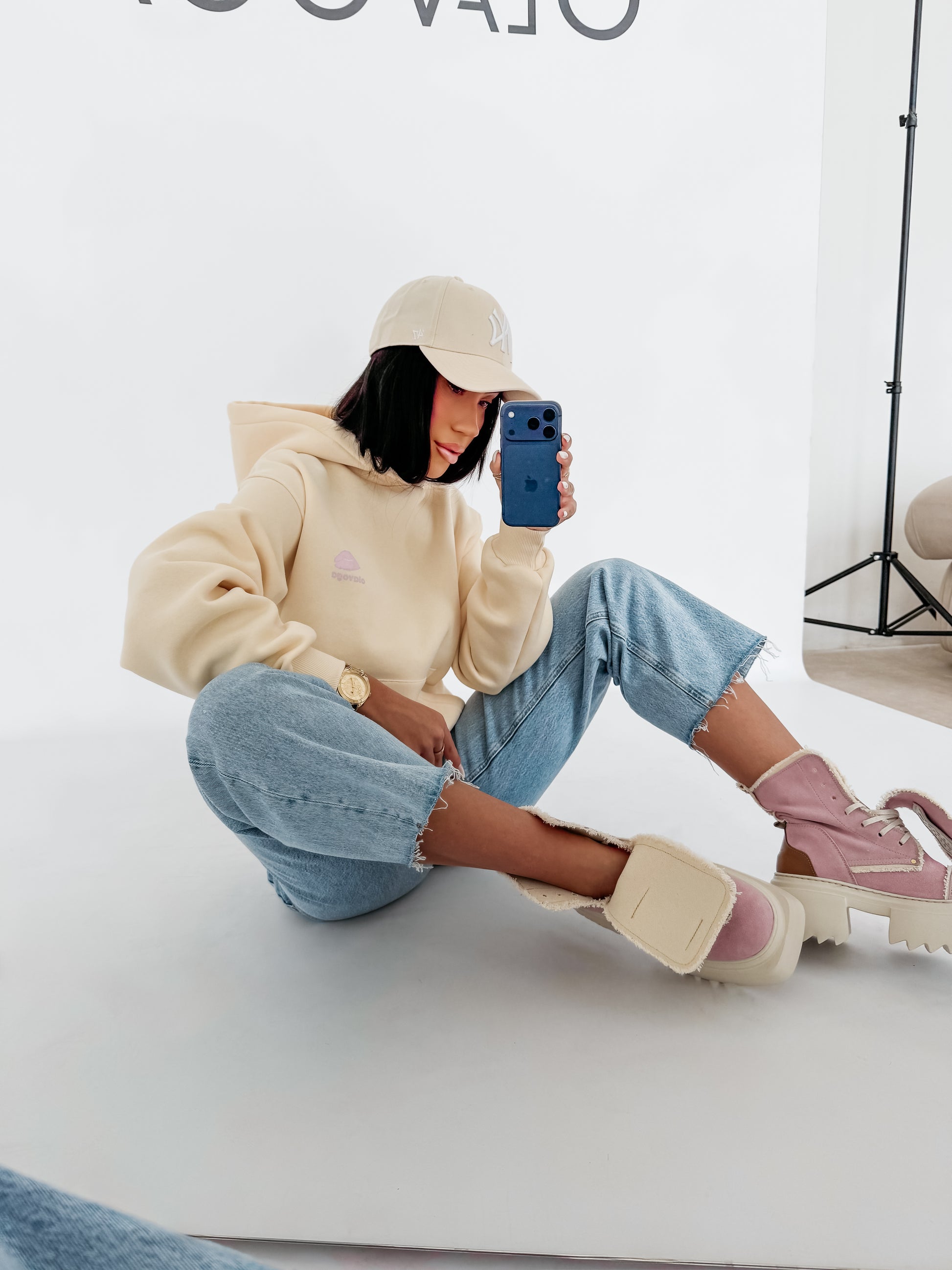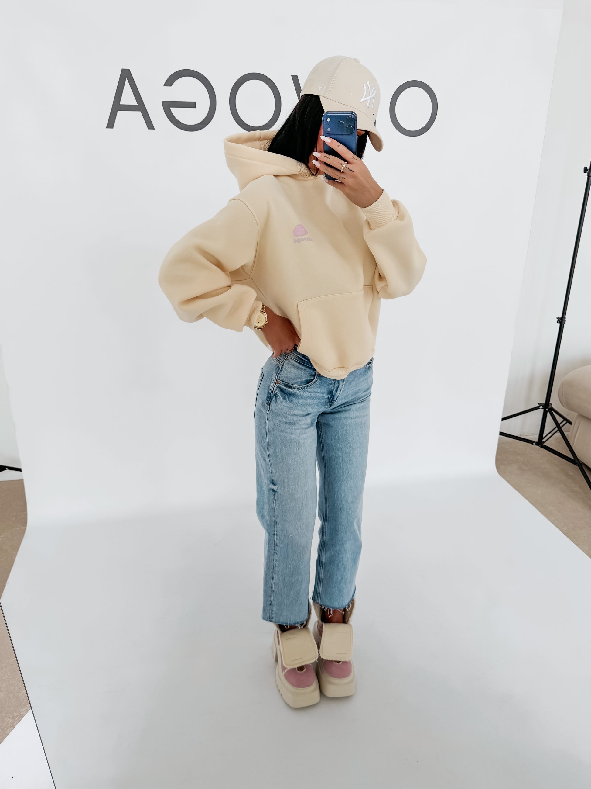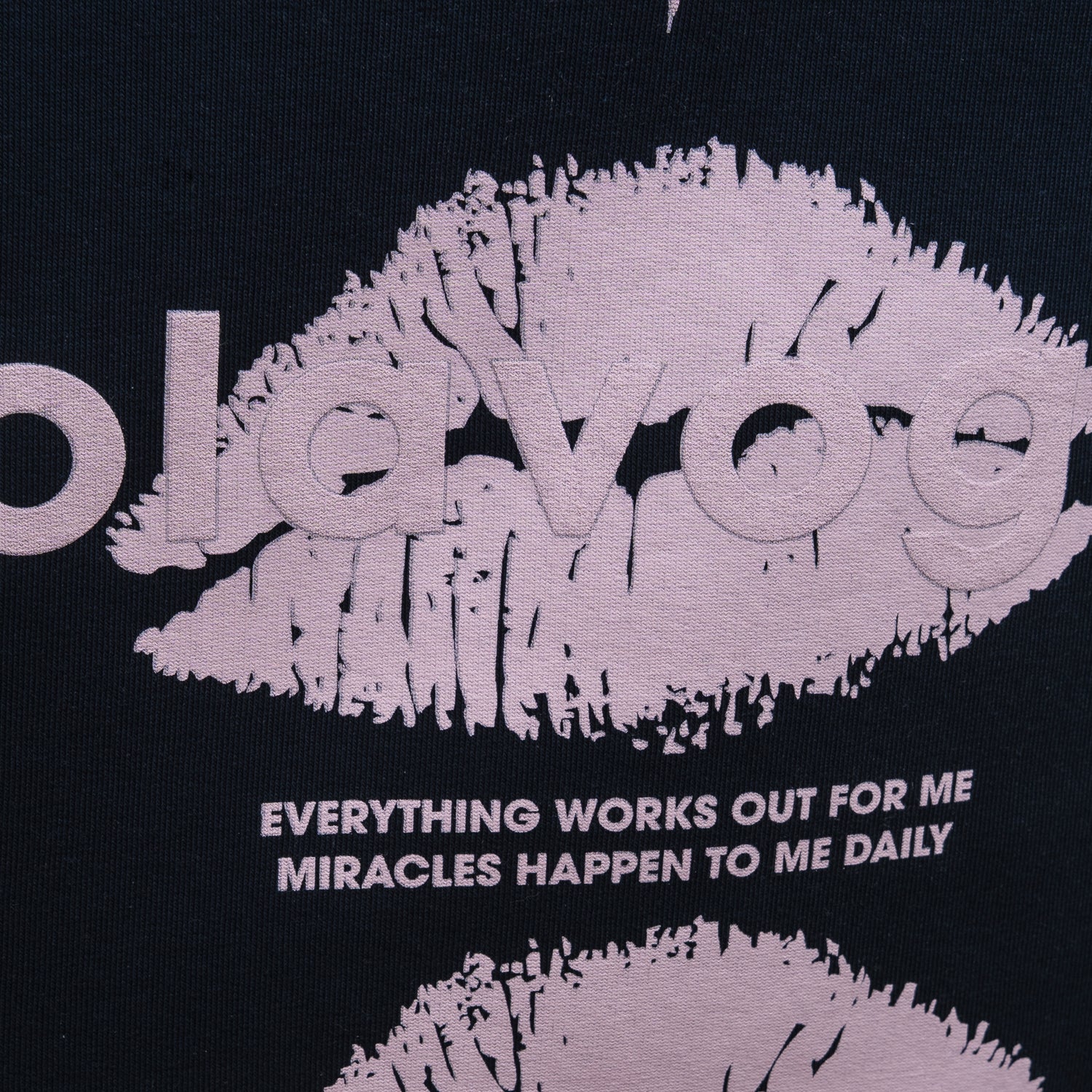 Key features: hood, comfortable fit, soft knit fabric, lips graphic on the back, slogan print, OLAVOGA branding, casual statement style.