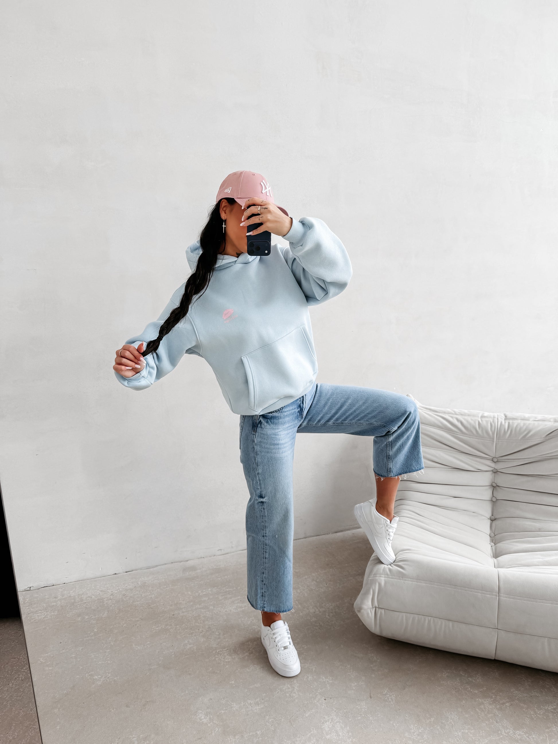 Hooded sweatshirt with a relaxed, modern fit, made from soft and pleasant-to-touch knit fabric. The model is decorated with a striking back graphic featuring a lips motif, OLAVOGA branding and a statement slogan, giving it a bold character. The front is finished with subtle branding.