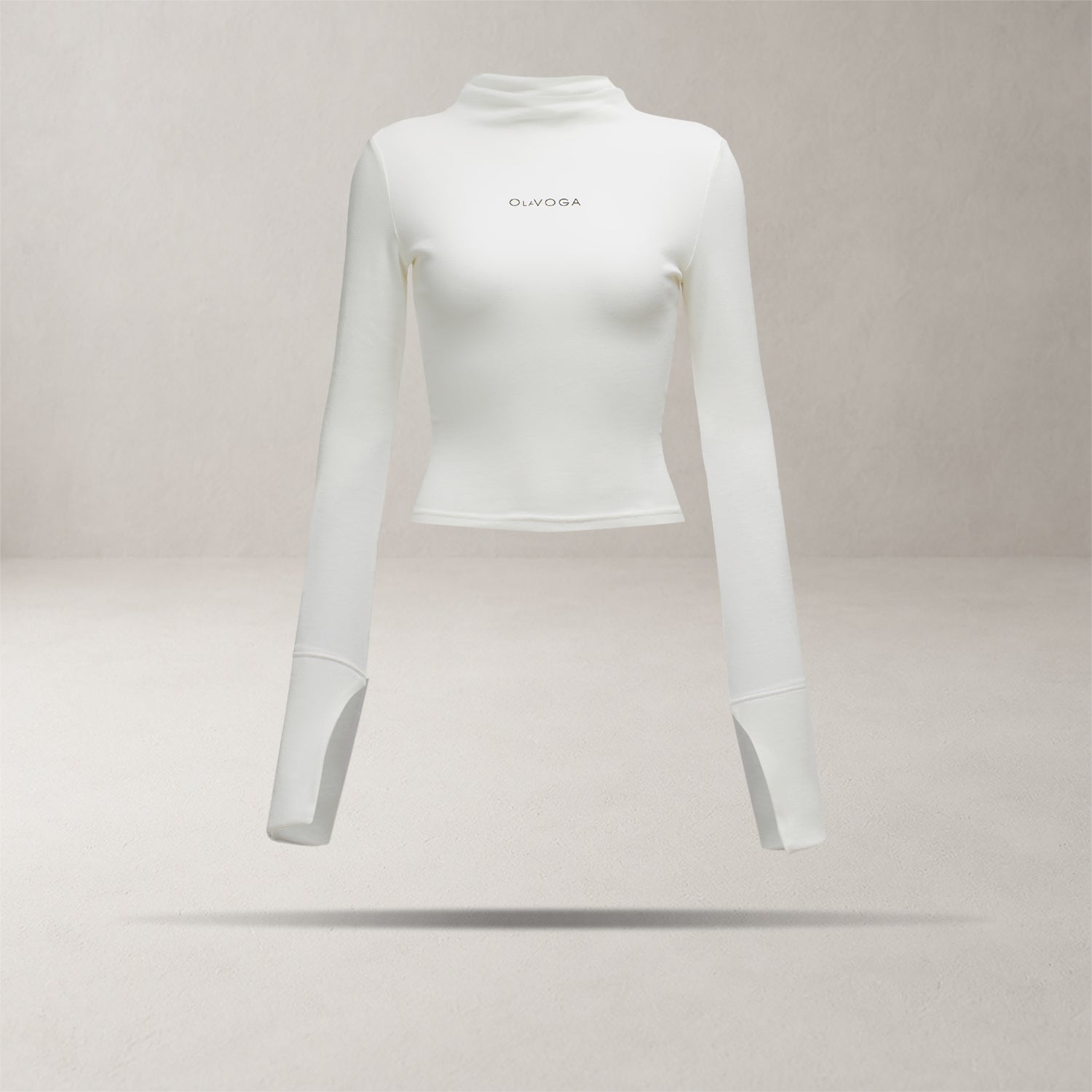 A perfectly fitted long-sleeve top with a subtle stand-up collar. Made from high-quality, soft, and elastic fabric for a comfortable fit. Features flared sleeves with elegant slits and a delicate OLAVOGA logo on the front, adding a refined touch to the minimalist design.