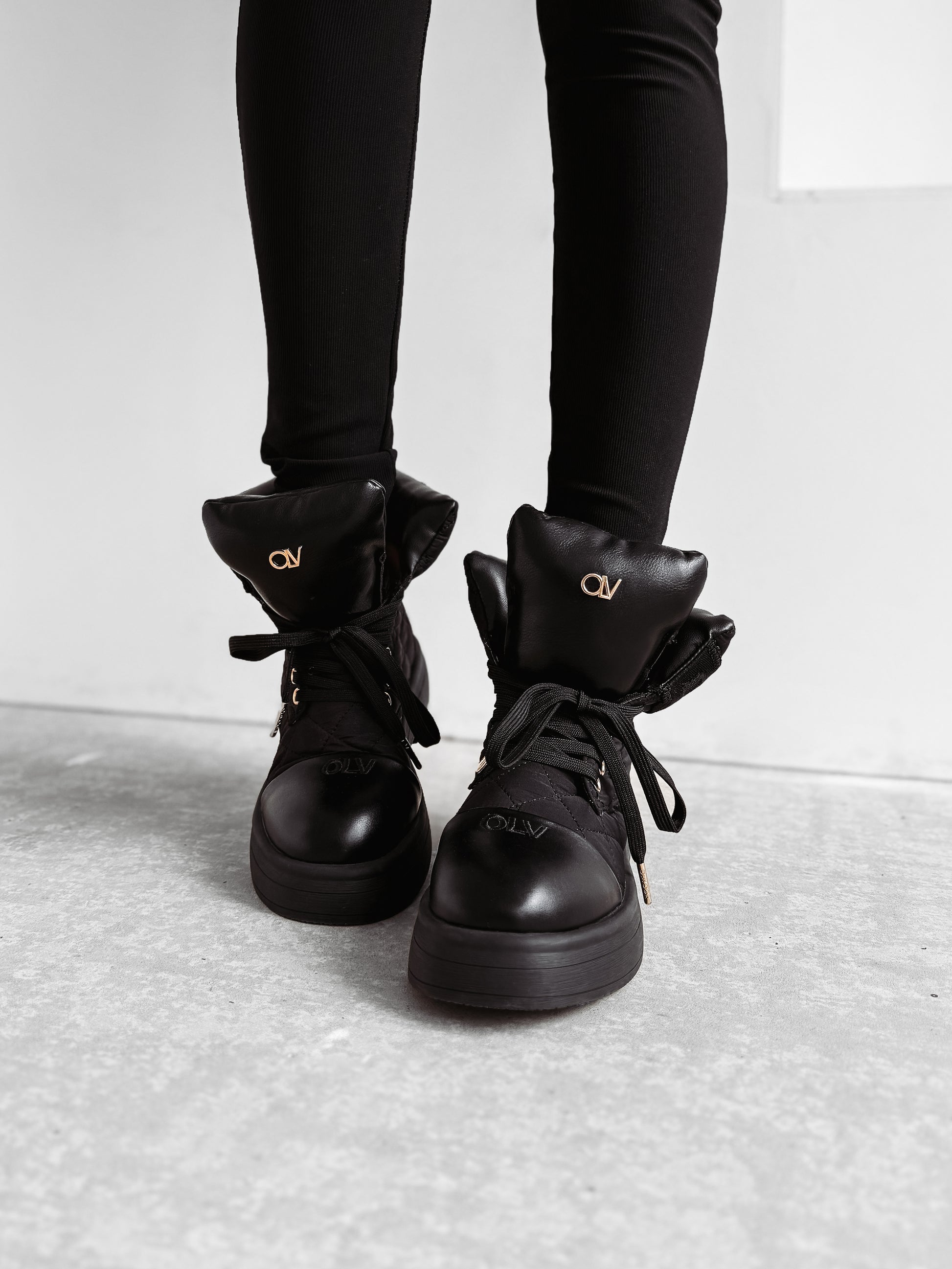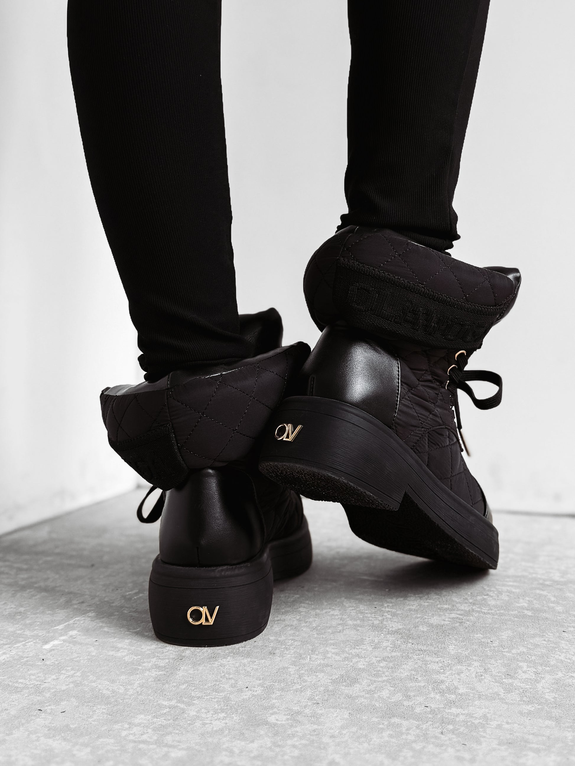 Contemporary women’s shoes with a bold, chunky silhouette set on a slightly elevated sole. Crafted from a combination of smooth eco-leather and quilted fabric. The gold-tone OLV detailing adds an elegant touch, while the soft upper ensures lasting comfort throughout the day.