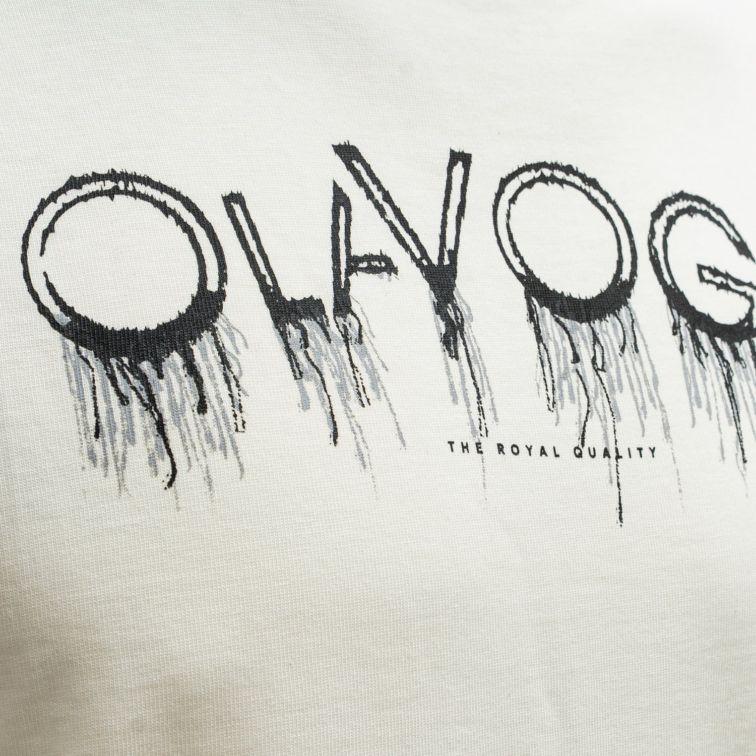 A classic short-sleeve T-shirt crafted from premium quality cotton. Designed in a timeless, regular fit for everyday comfort. The front features a bold OLAVOGA logo print in an artistic, distressed finish with the statement “The Royal Quality” — a perfect blend of minimalism and luxury street style.