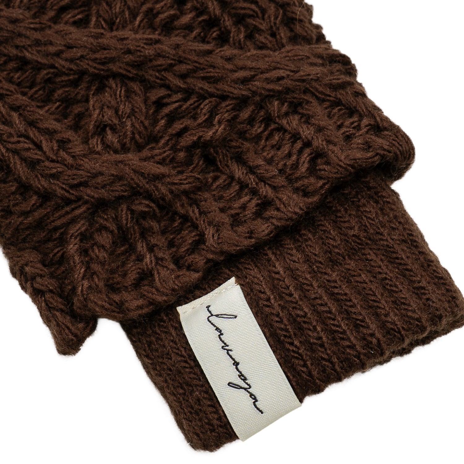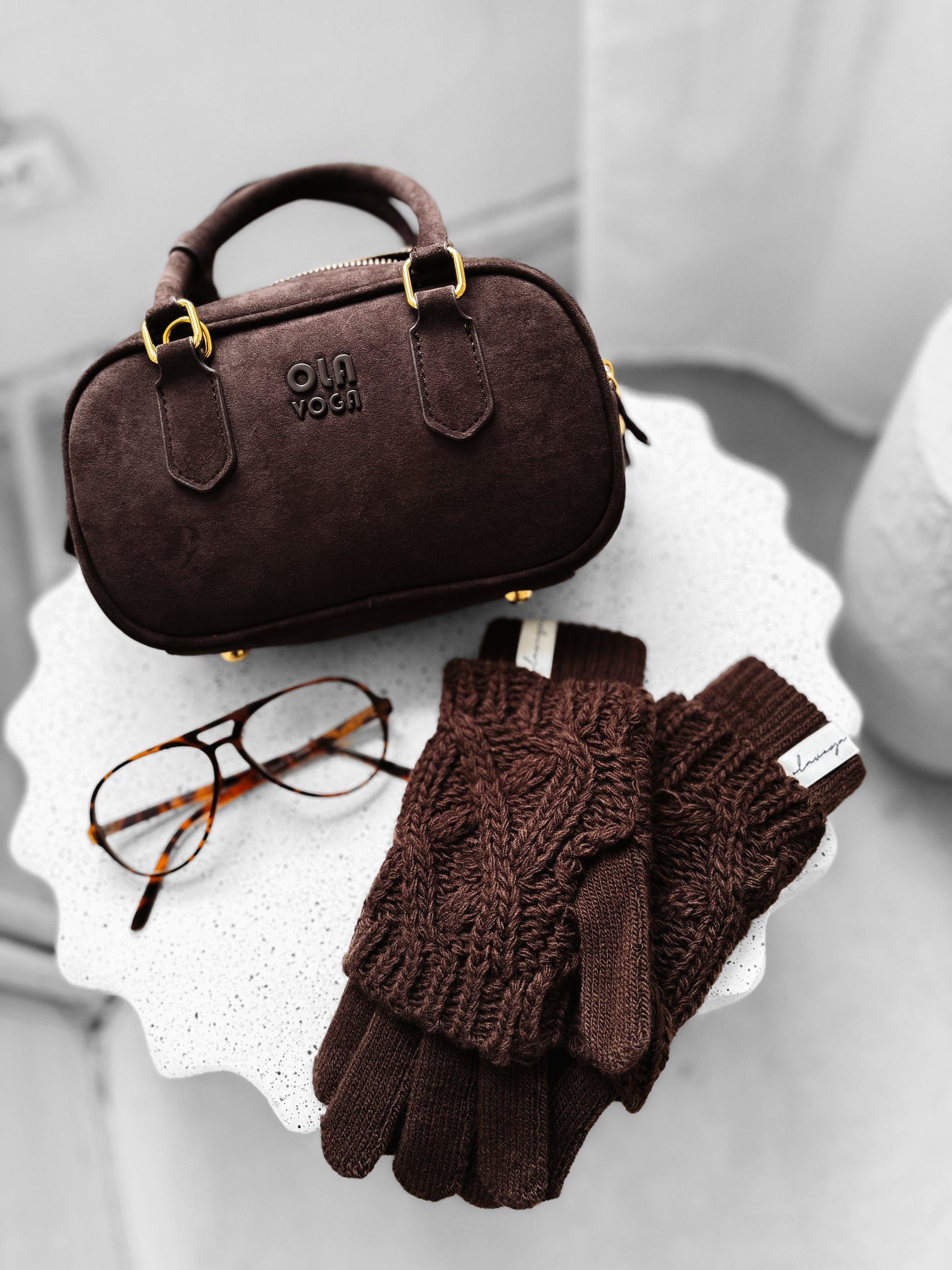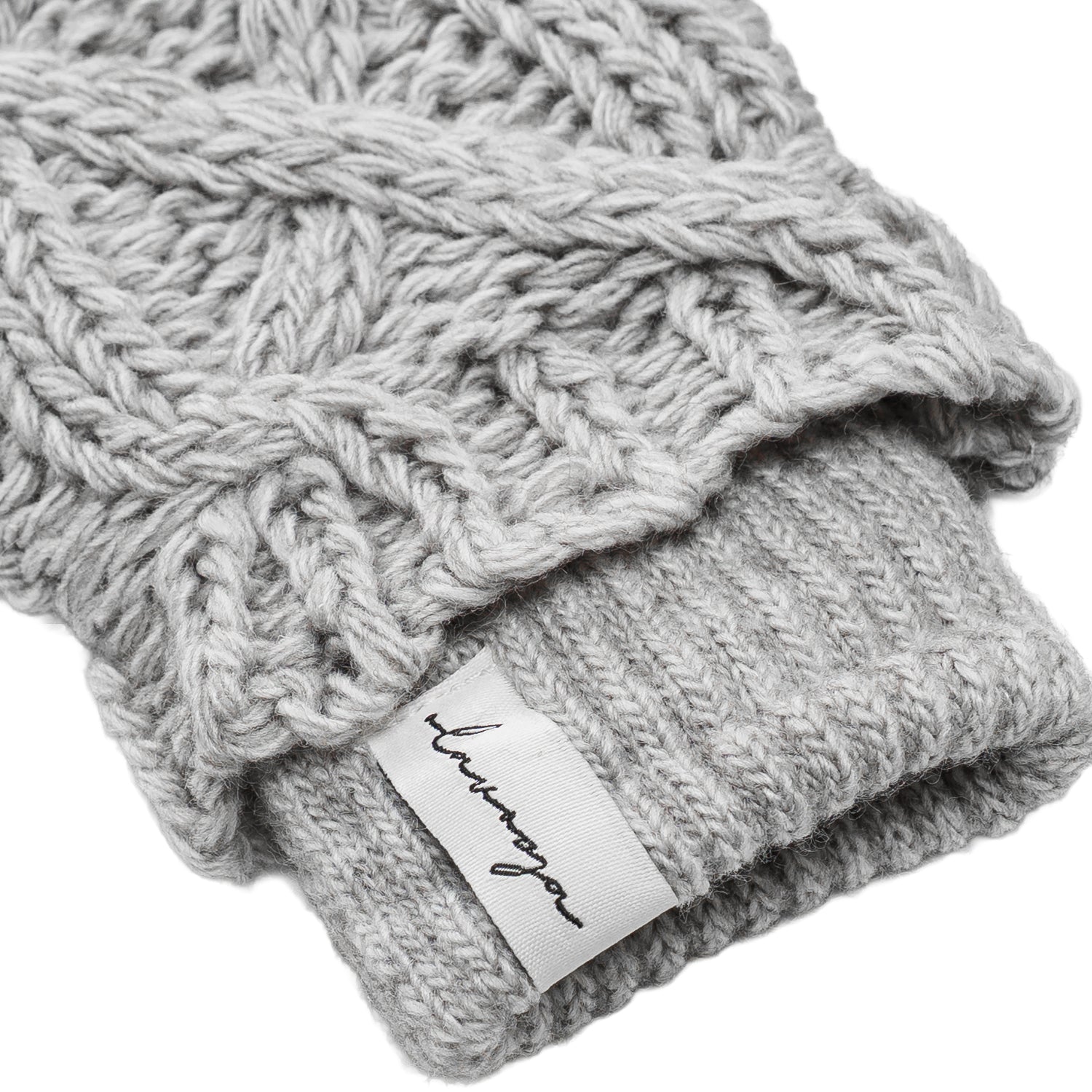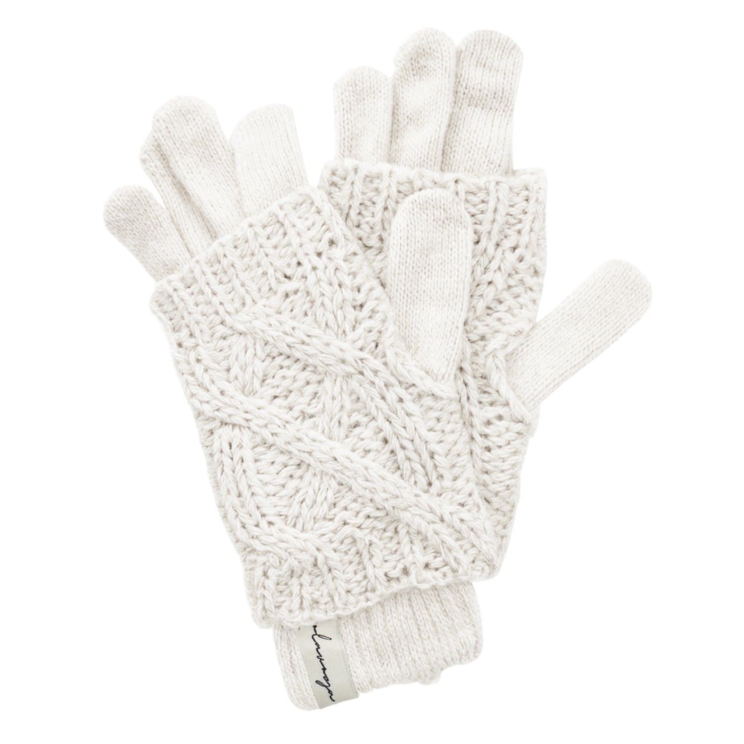 Knitted gloves made from soft, stretchy yarn with a decorative weave. Two-piece design – the outer, looser layer can be removed to reveal fitted full-finger gloves underneath. Finished with a subtle OLAVOGA logo patch for a refined touch.