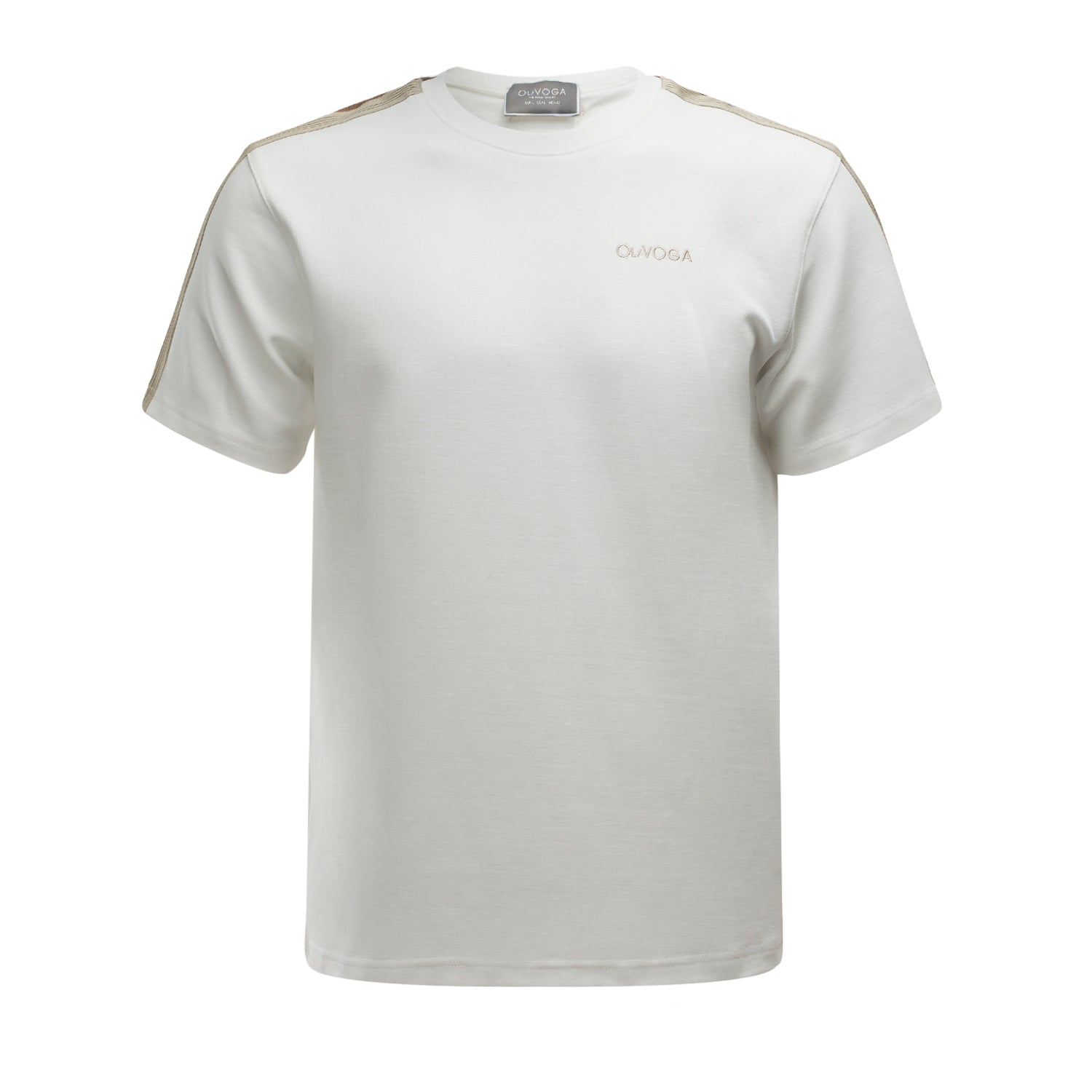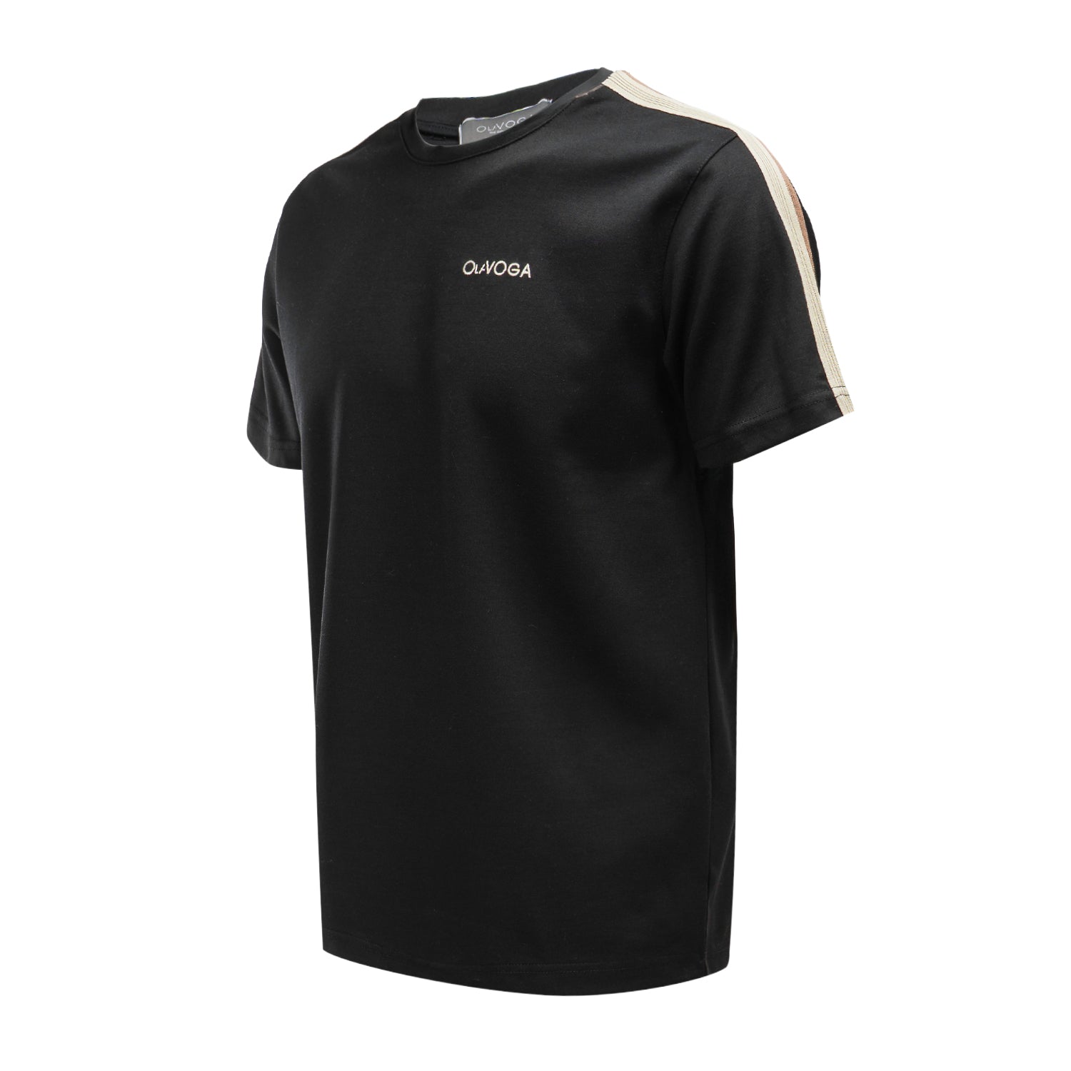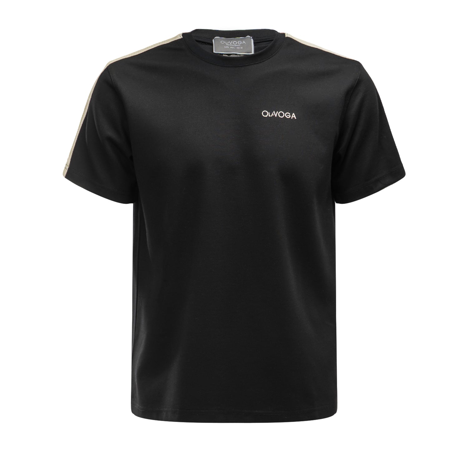 A classic men’s T-shirt with short sleeves and a straight fit. Made from high-quality, stretch cotton for comfort and durability. Features a gold embroidered OLAVOGA logo on the front and at the back of the neck. The shoulders are finished with contrasting ribbed taping in two different shades, adding a stylish touch.