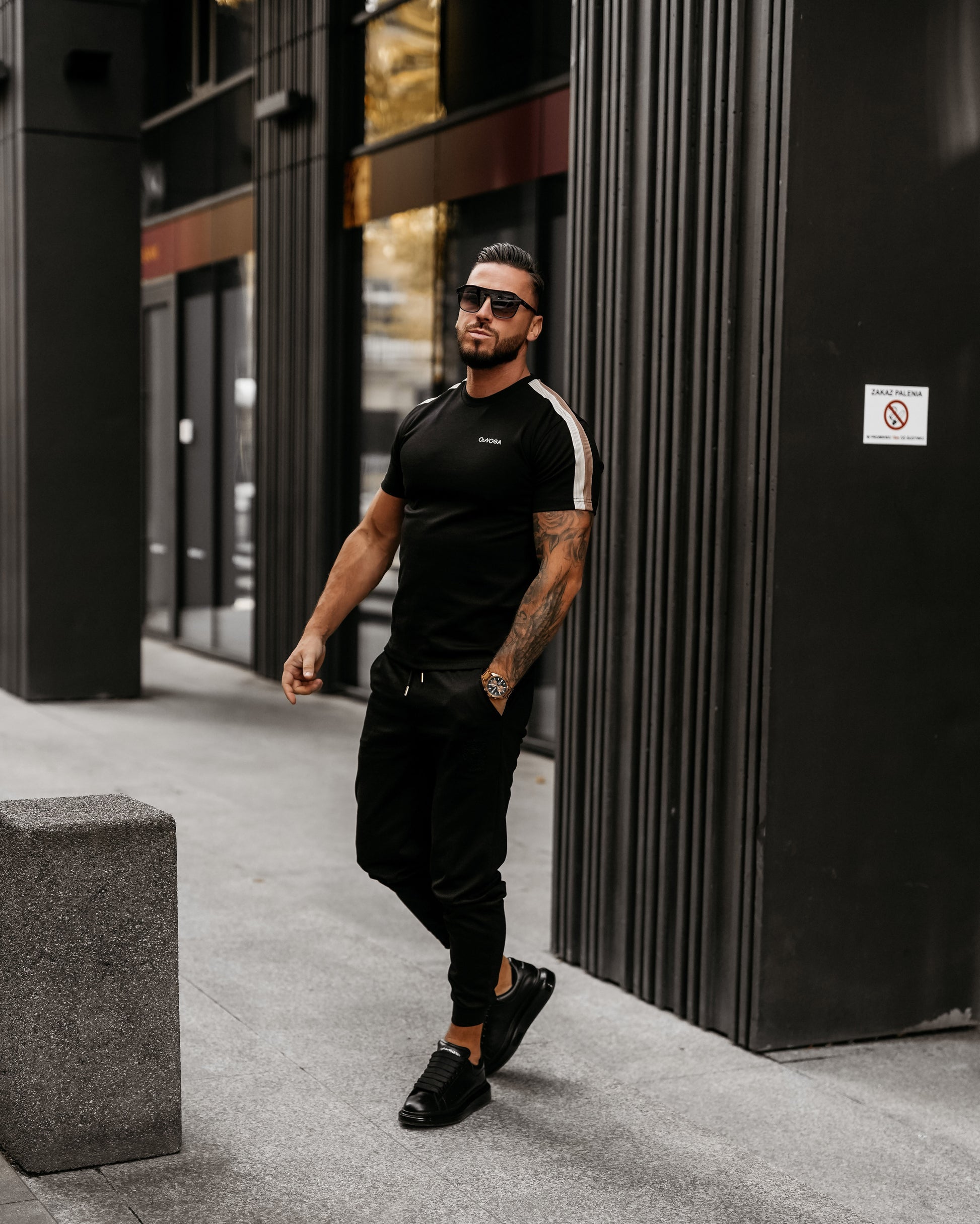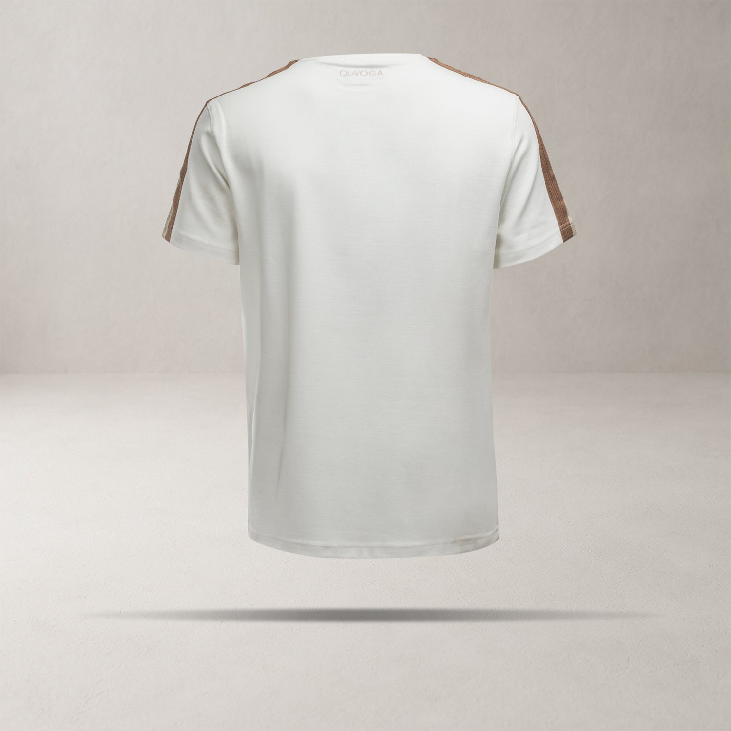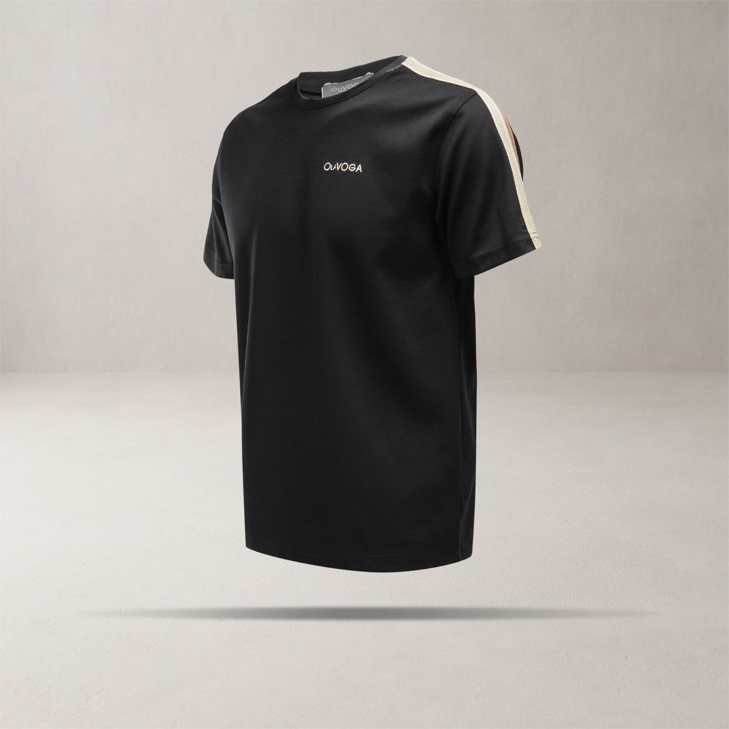 A classic men’s T-shirt with short sleeves and a straight fit. Made from high-quality, stretch cotton for comfort and durability. Features a gold embroidered OLAVOGA logo on the front and at the back of the neck. The shoulders are finished with contrasting ribbed taping in two different shades, adding a stylish touch.