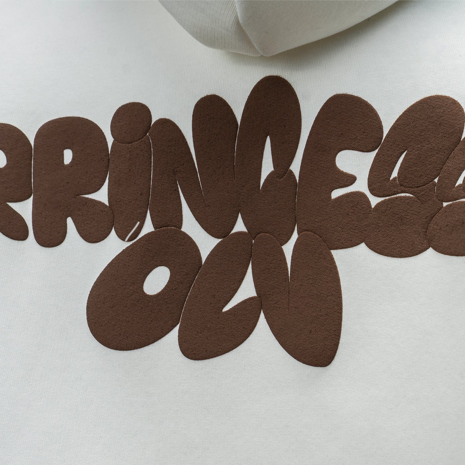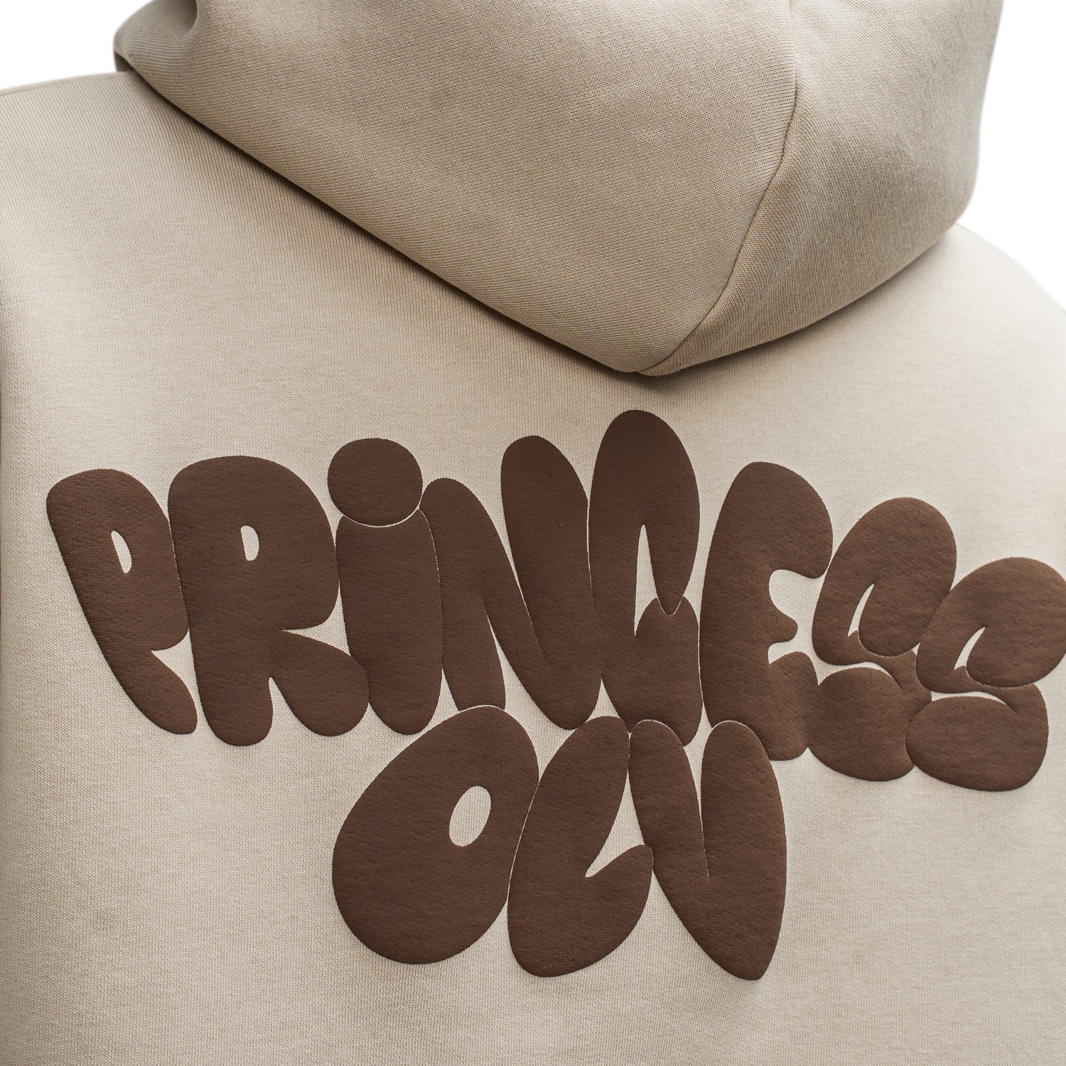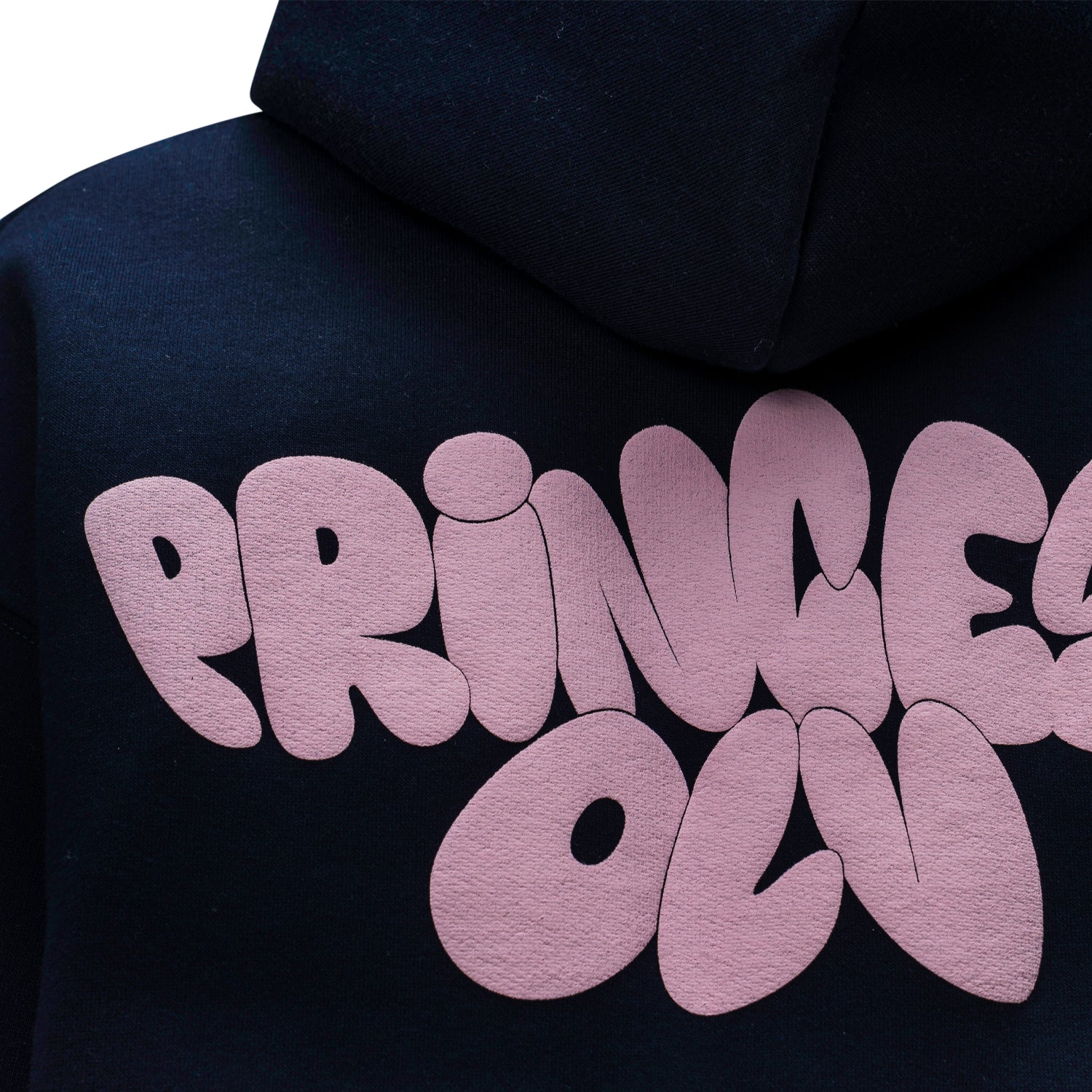 Soft oversized hoodie with a spacious hood and extended drawstrings. Made from high-quality, cosy fabric. Features a fluffy PRINCESS OLV bubble-style front detail and a bold PRINCESS OLV graphic on the back.