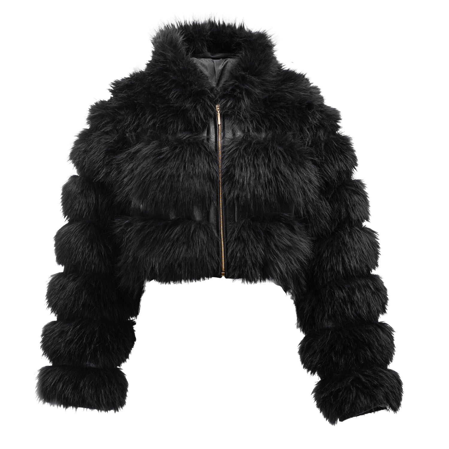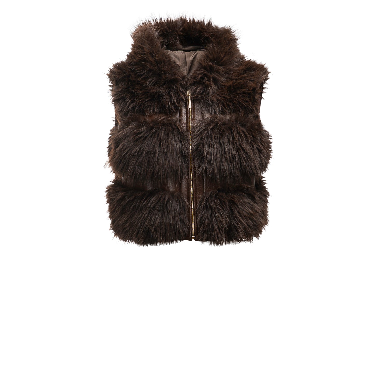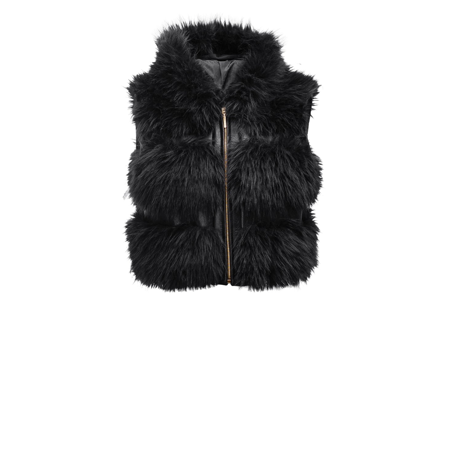 Faux fur jacket with a cropped cut. Modern, modular design – can be worn as a classic jacket, gilet or with shortened sleeves thanks to detachable arms. Finished with soft faux fur. Zip fastening, practical hood and subtle gold-tone details.
