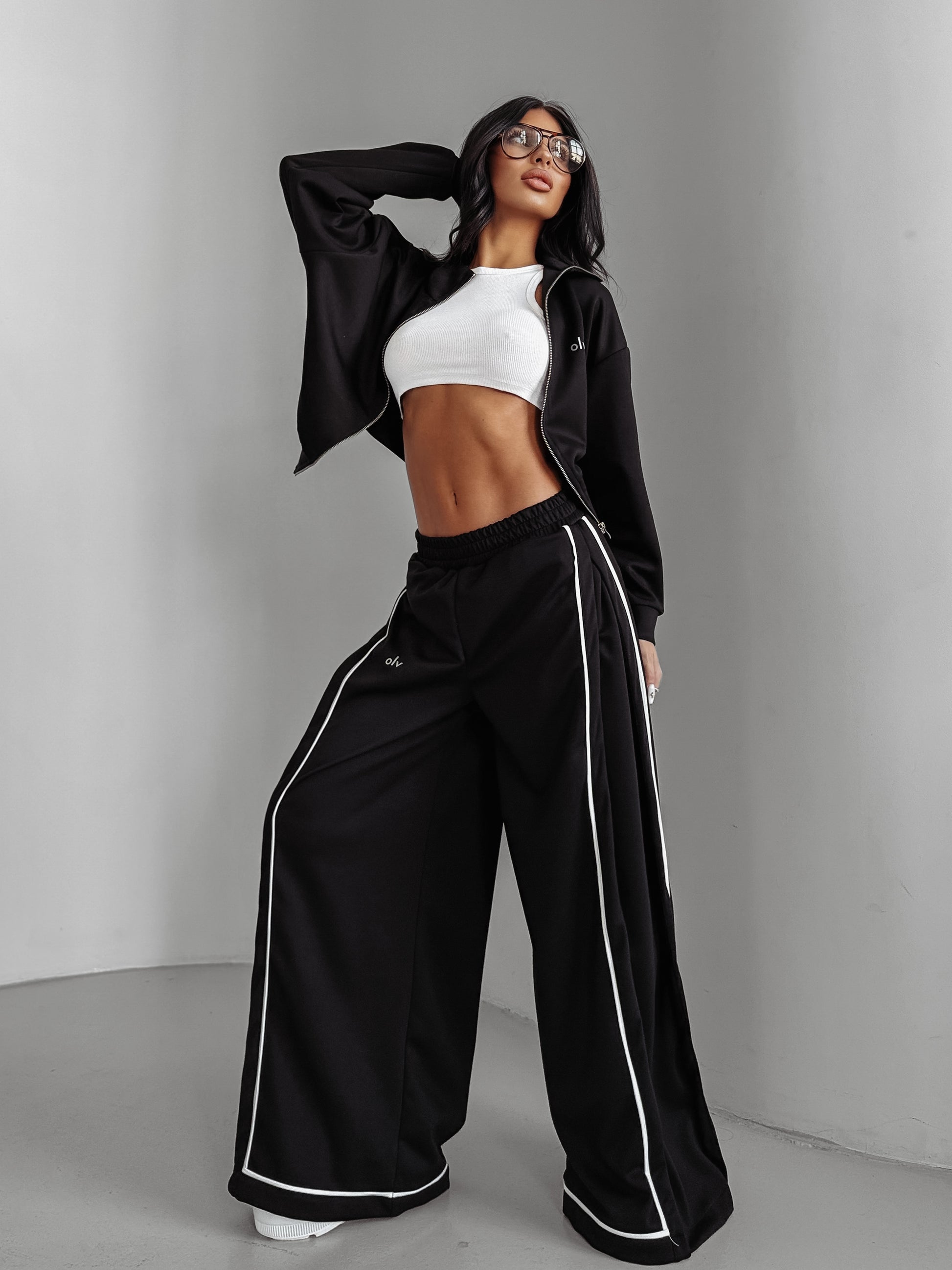 A zip-up sweatshirt without a hood, designed in a shorter cut. Made from high-quality, stretchy cotton blend. Features a raised stand-up collar and smooth ribbed cuffs. Subtle “OLV” branding on the front. Pairs perfectly with the SILENT STORM PANTS for a complete look.