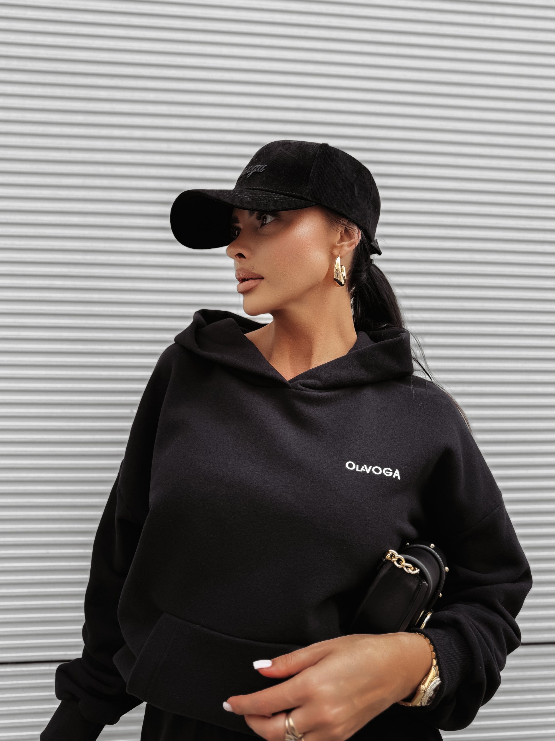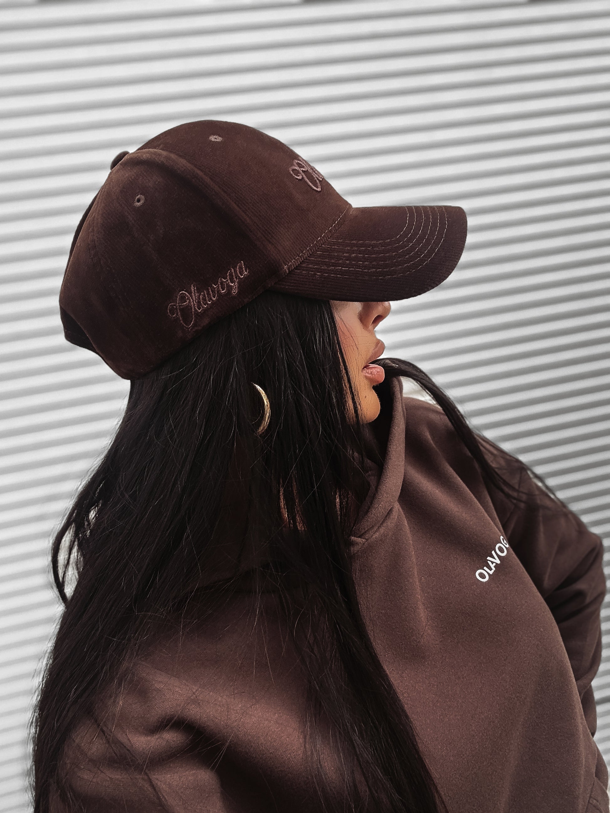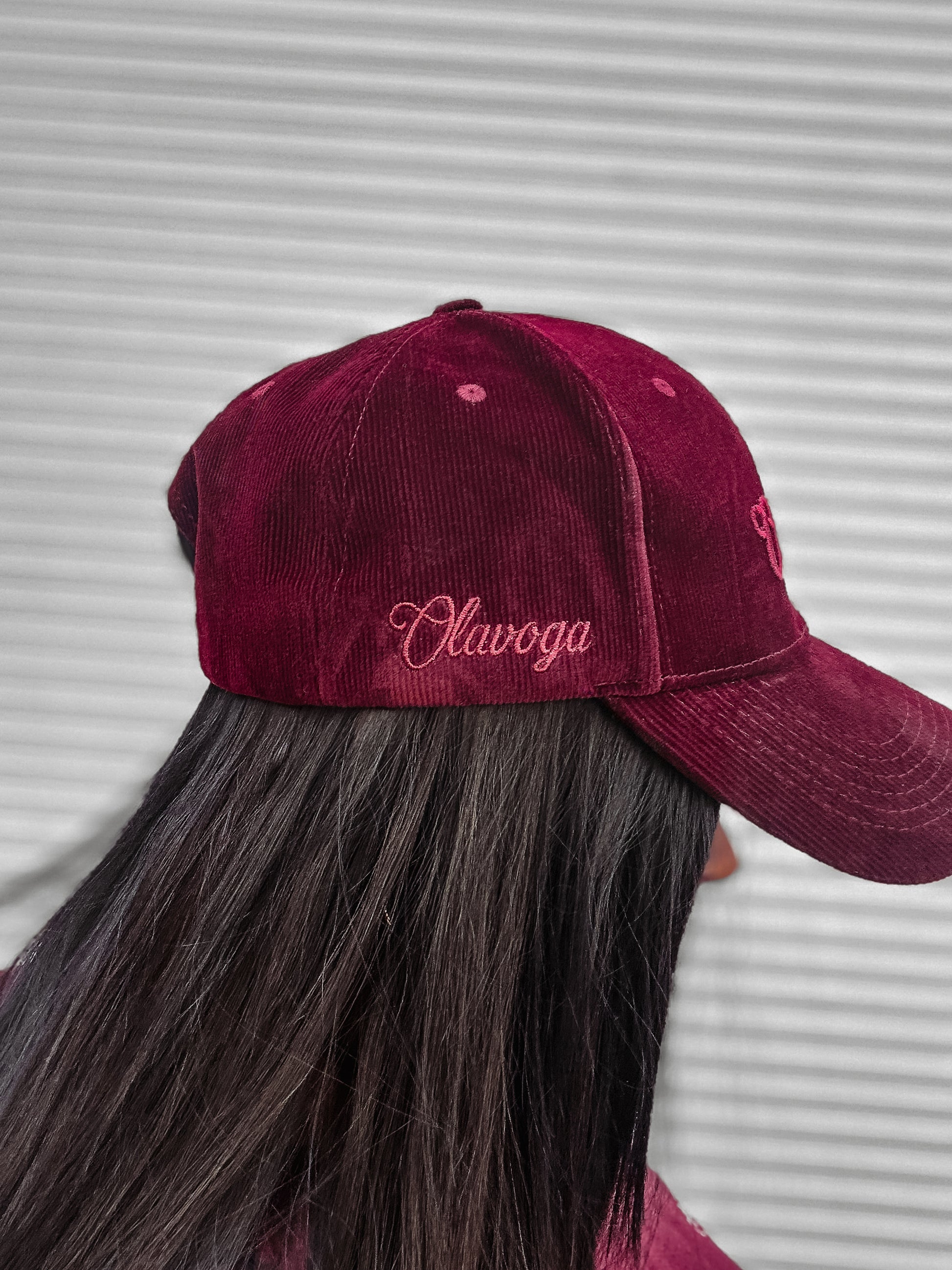 A casual baseball cap made from high-quality cotton blend. Features a classic curved brim and handwritten OLAVOGA embroidered logos on the front and side. Adjustable back strap ensures a perfect fit.
