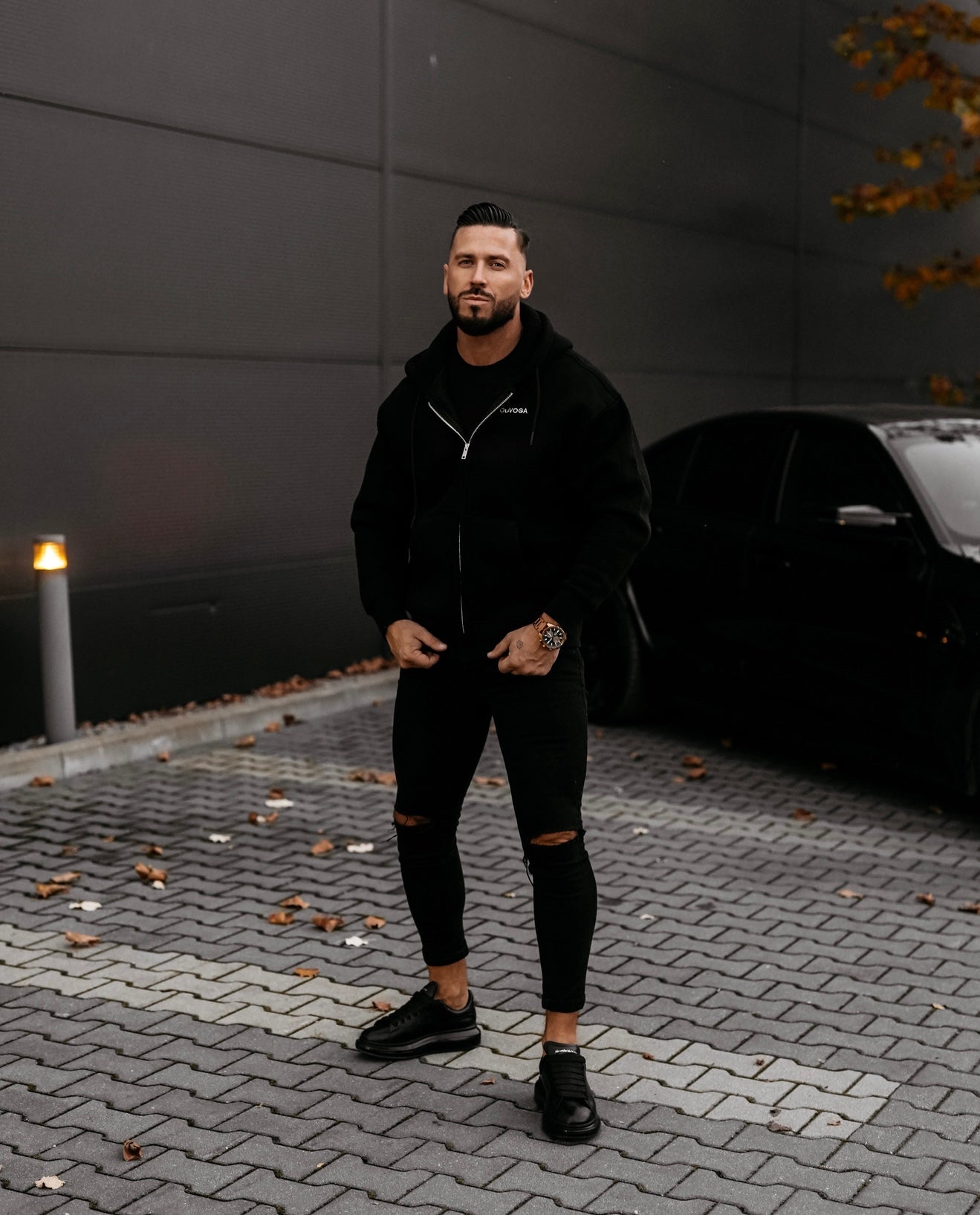 A zip-up men’s hoodie designed in a minimalist, contemporary silhouette. Crafted from premium, heavy-weight cotton blend fabric for softness and durability. Features ribbed cuffs, practical kangaroo pockets, and a subtle embroidered OLAVOGA logo on the chest — combining everyday comfort with refined streetwear elegance.