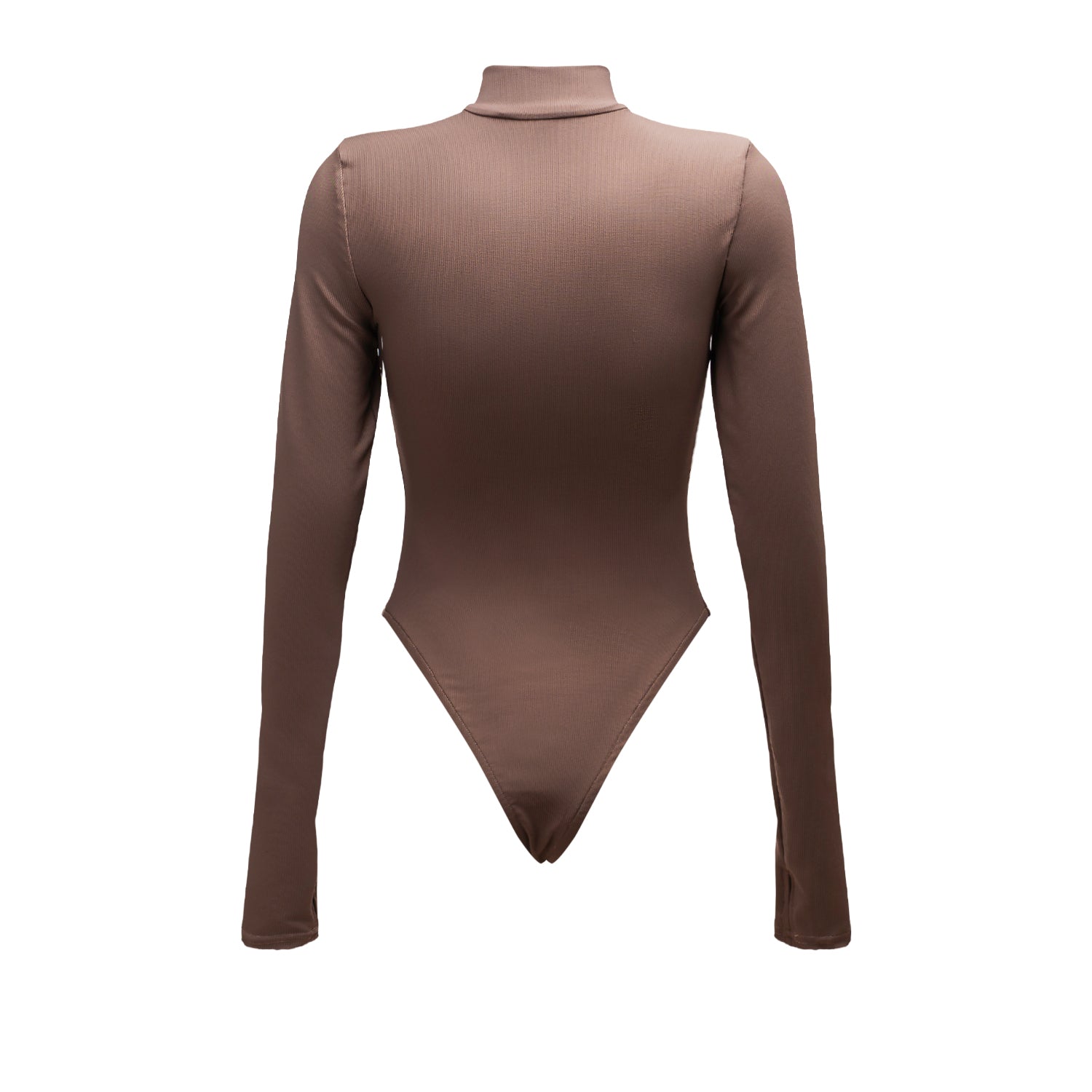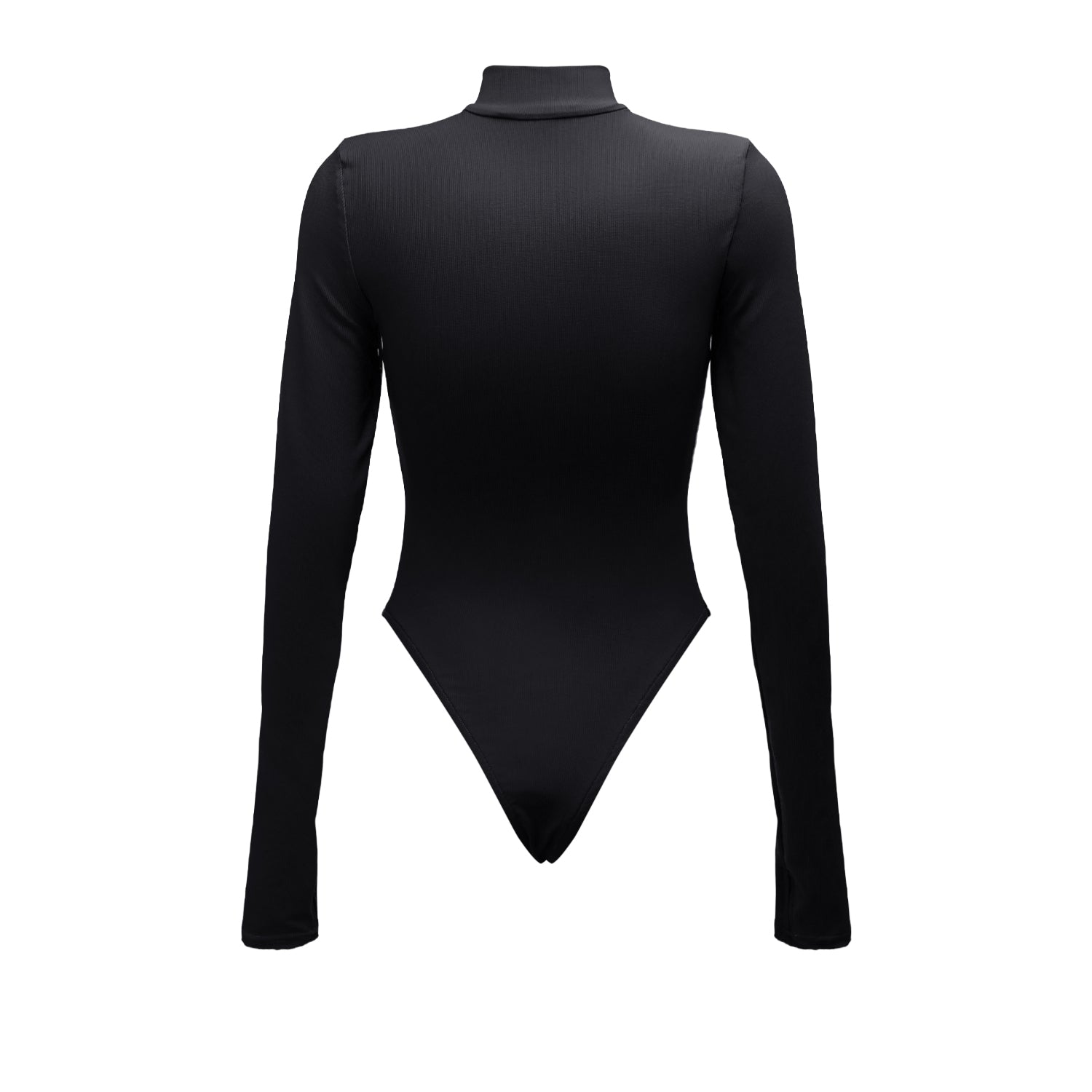 A perfectly fitted bodysuit with a sporty–elegant character. Made from high-quality ribbed stretch fabric. This long-sleeve style features thumbhole cut-outs and a practical zip fastening that allows you to adjust the neckline. The front is finished with a subtle contrasting OLAVOGA logo.