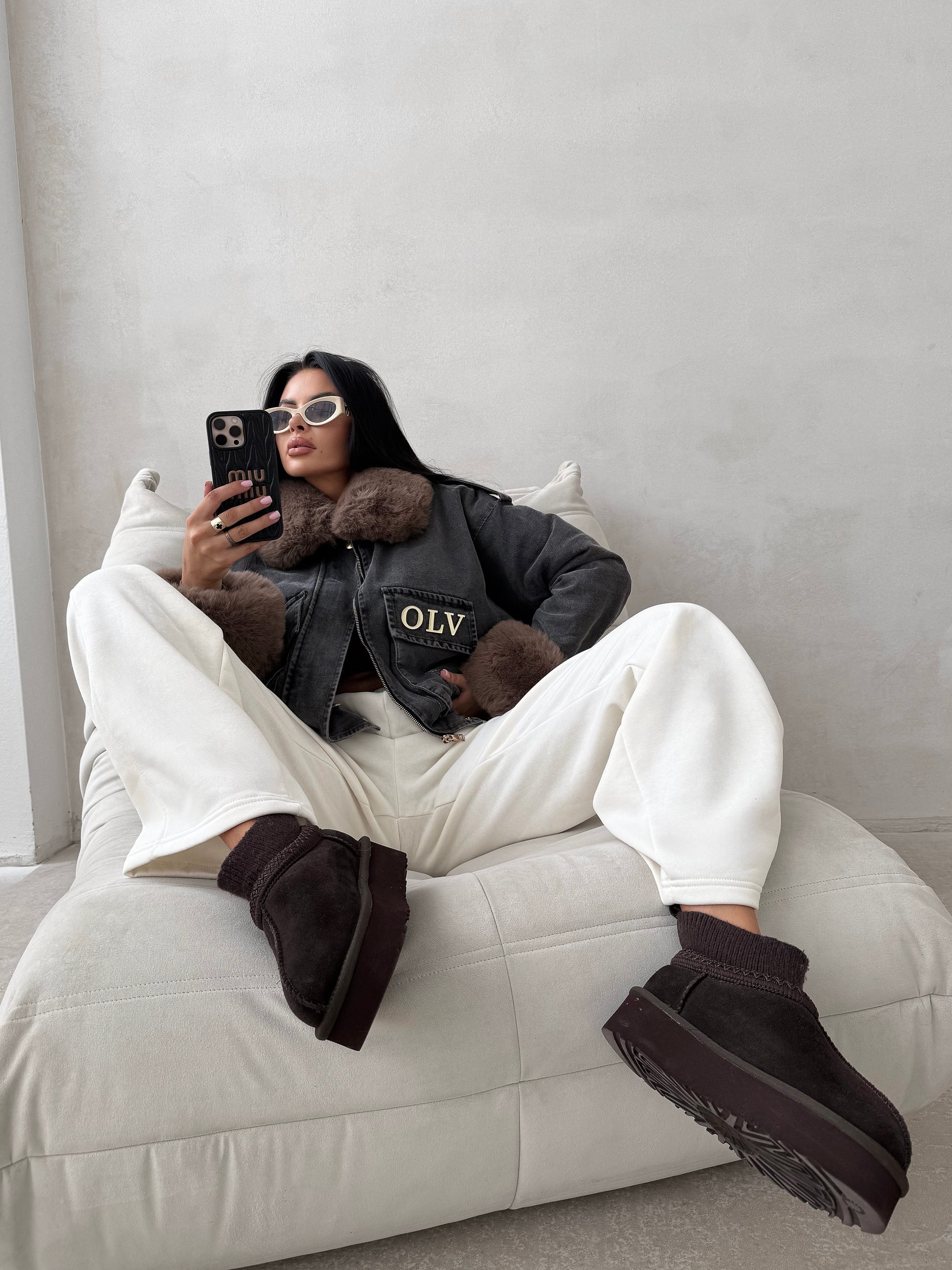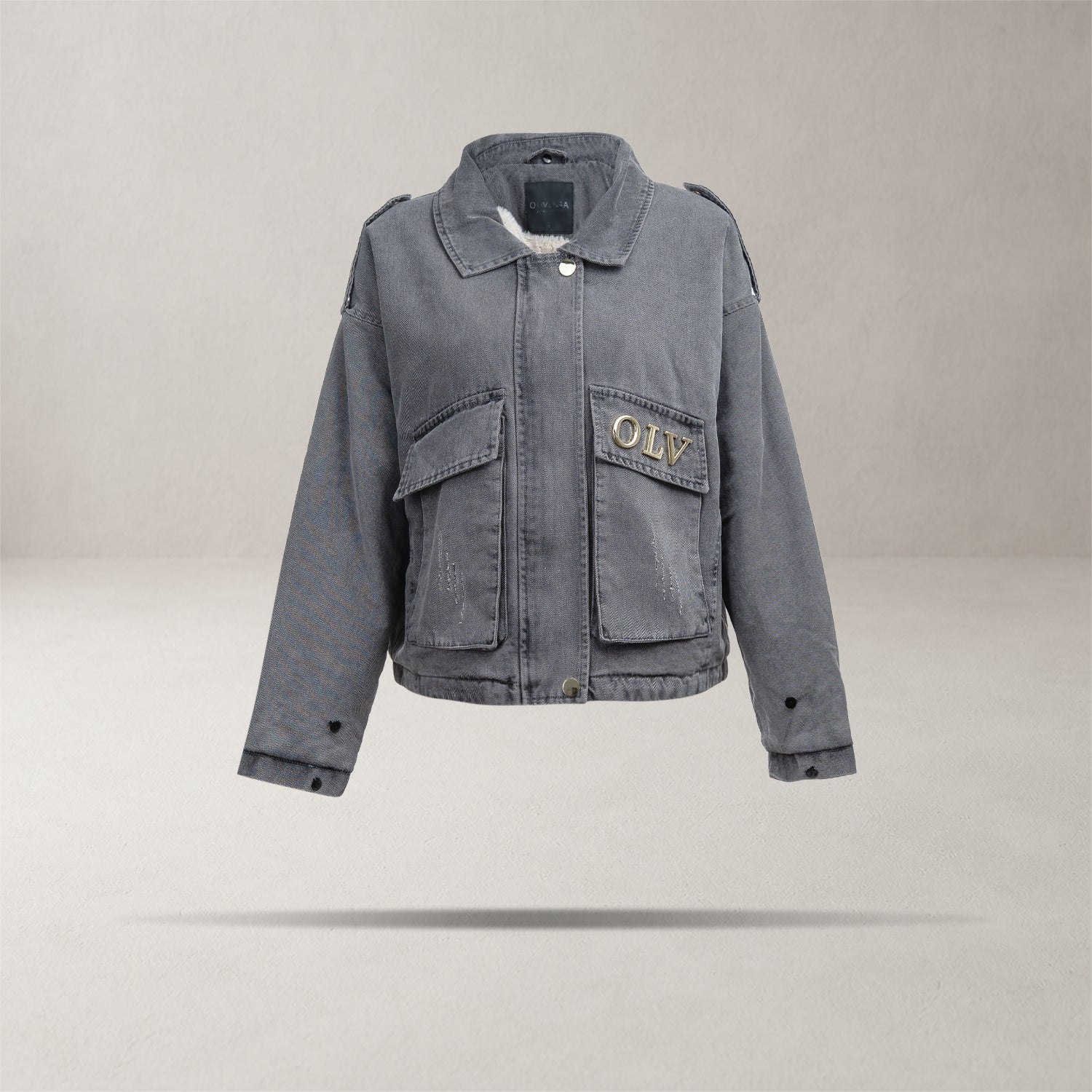 Finished with a front metal zip fastening, a gold OLV plaque on the front, and an oversized OLAVOGA embroidery on the back.