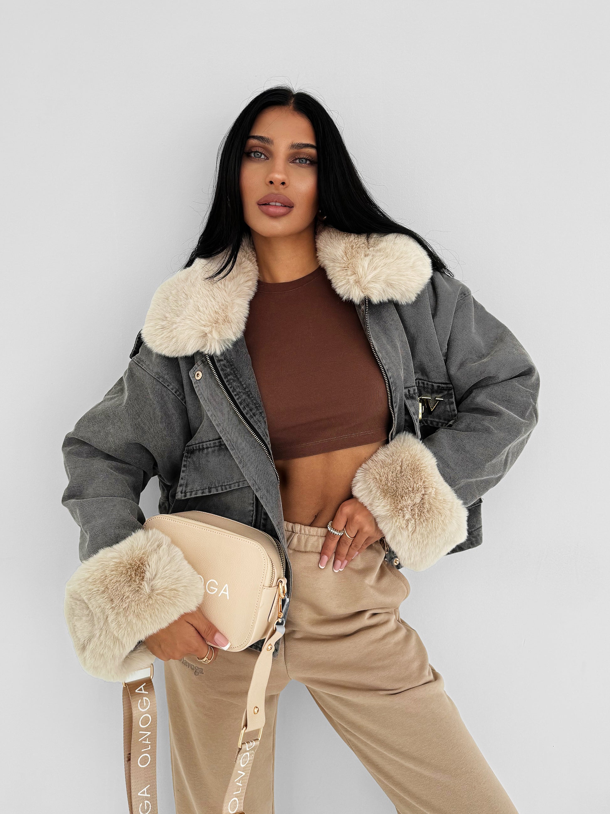 Features soft faux fur lining on the collar and cuffs, both fully detachable.