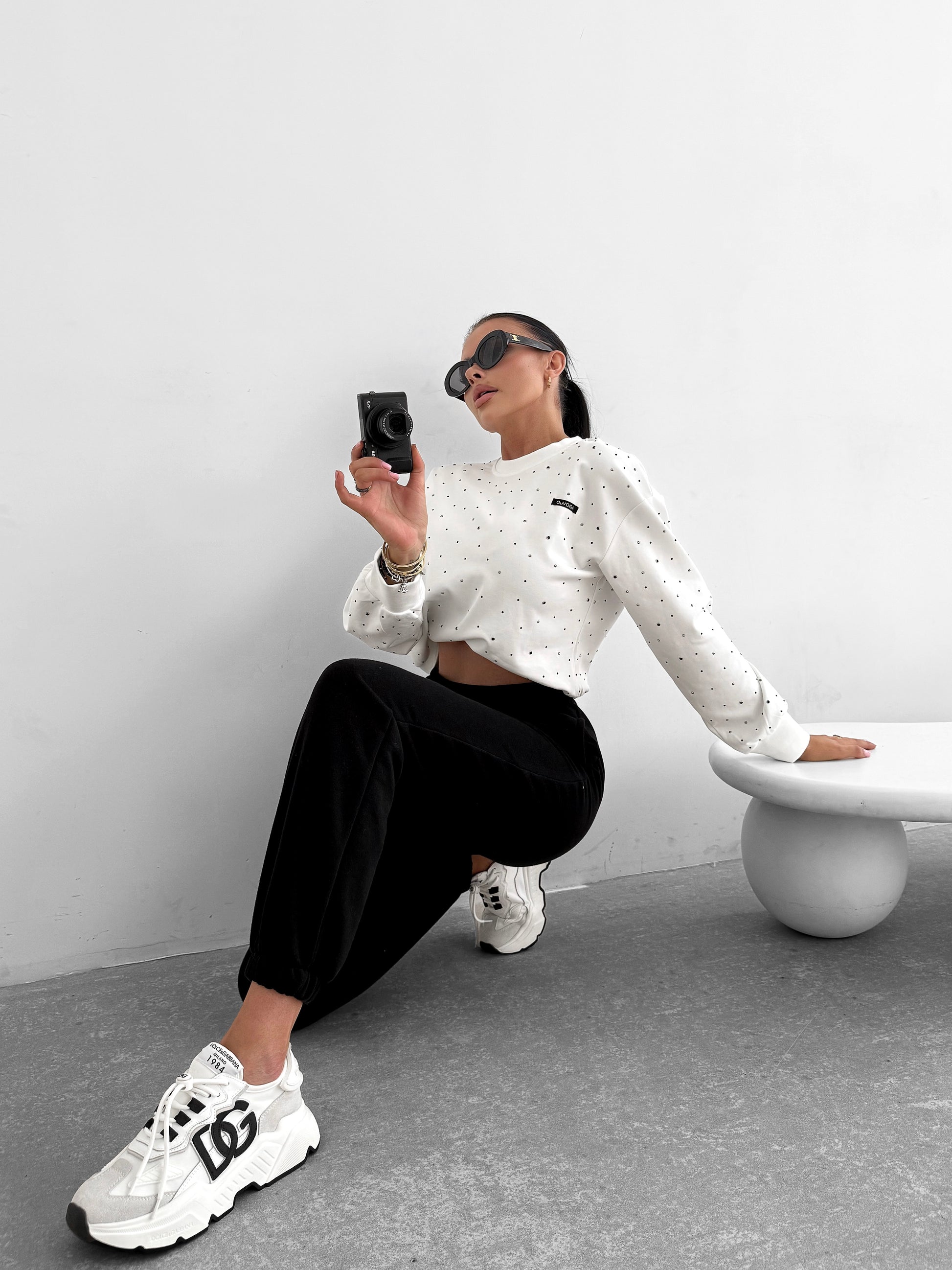A classic sweatshirt without a hood, designed in a shorter cut.