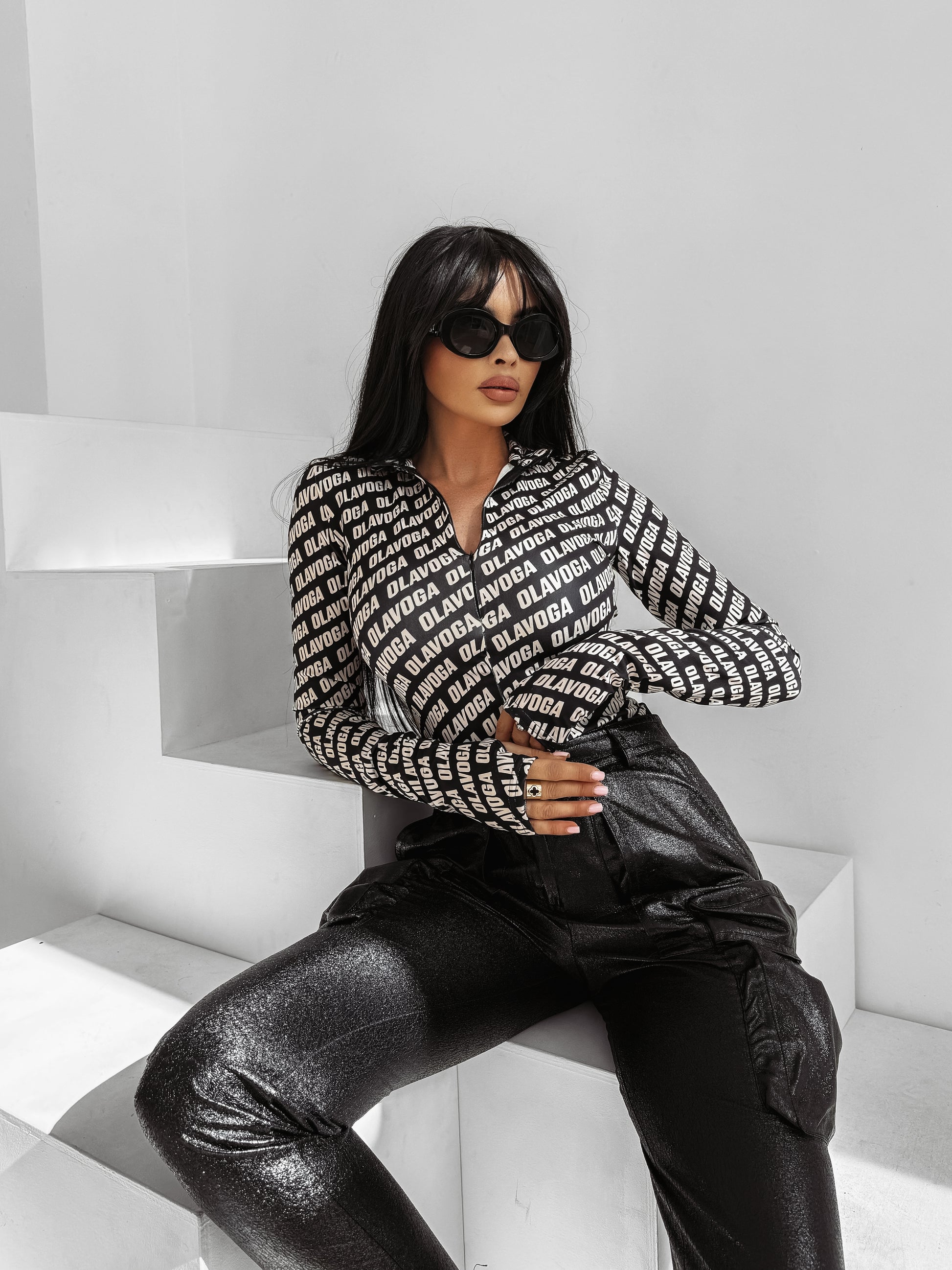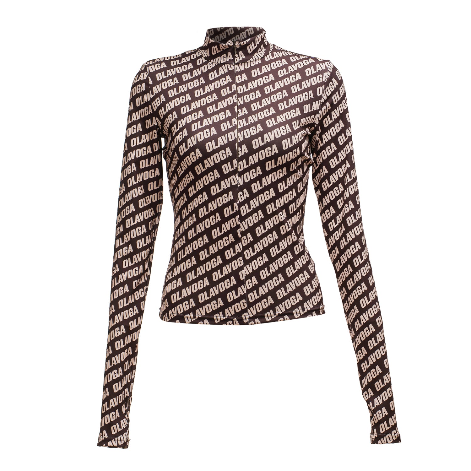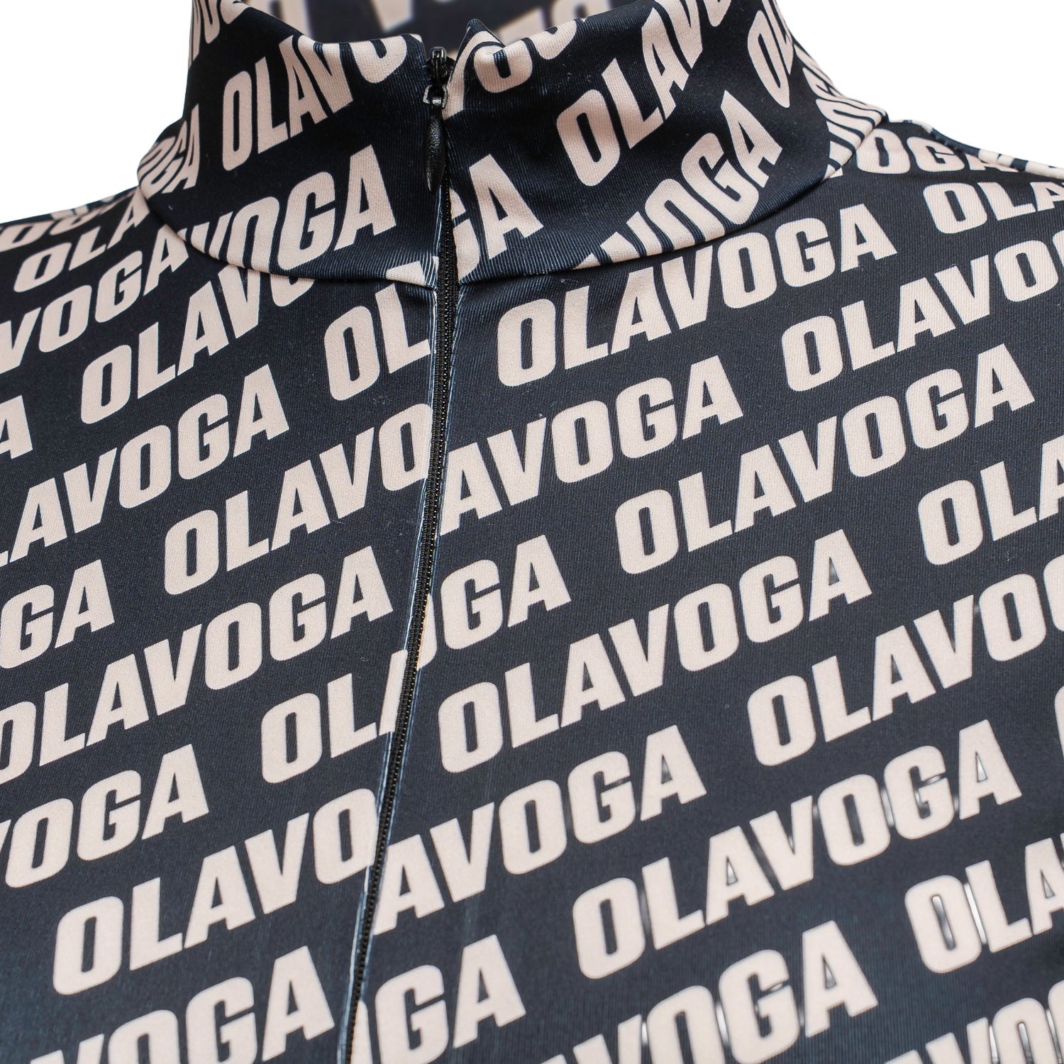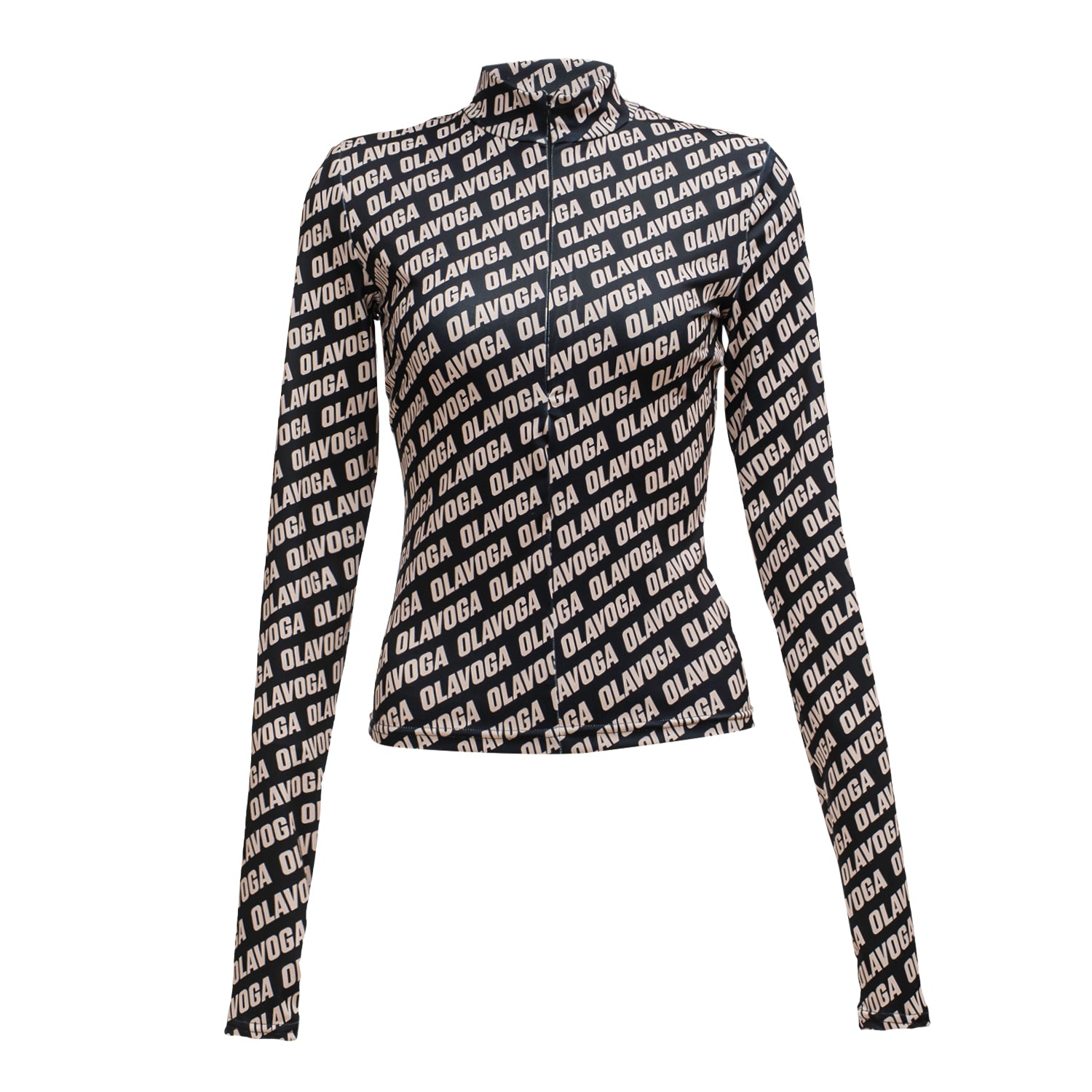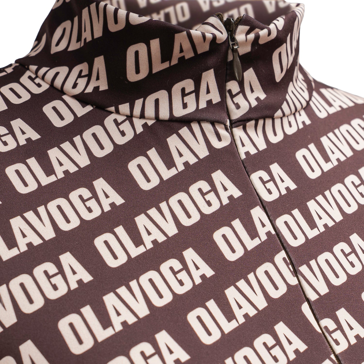 A perfectly fitted top crafted from high-quality stretch fabric. Decorated all over with a repeating OLAVOGA logo print. The stand-up collar with a zip fastening allows you to adjust the neckline.