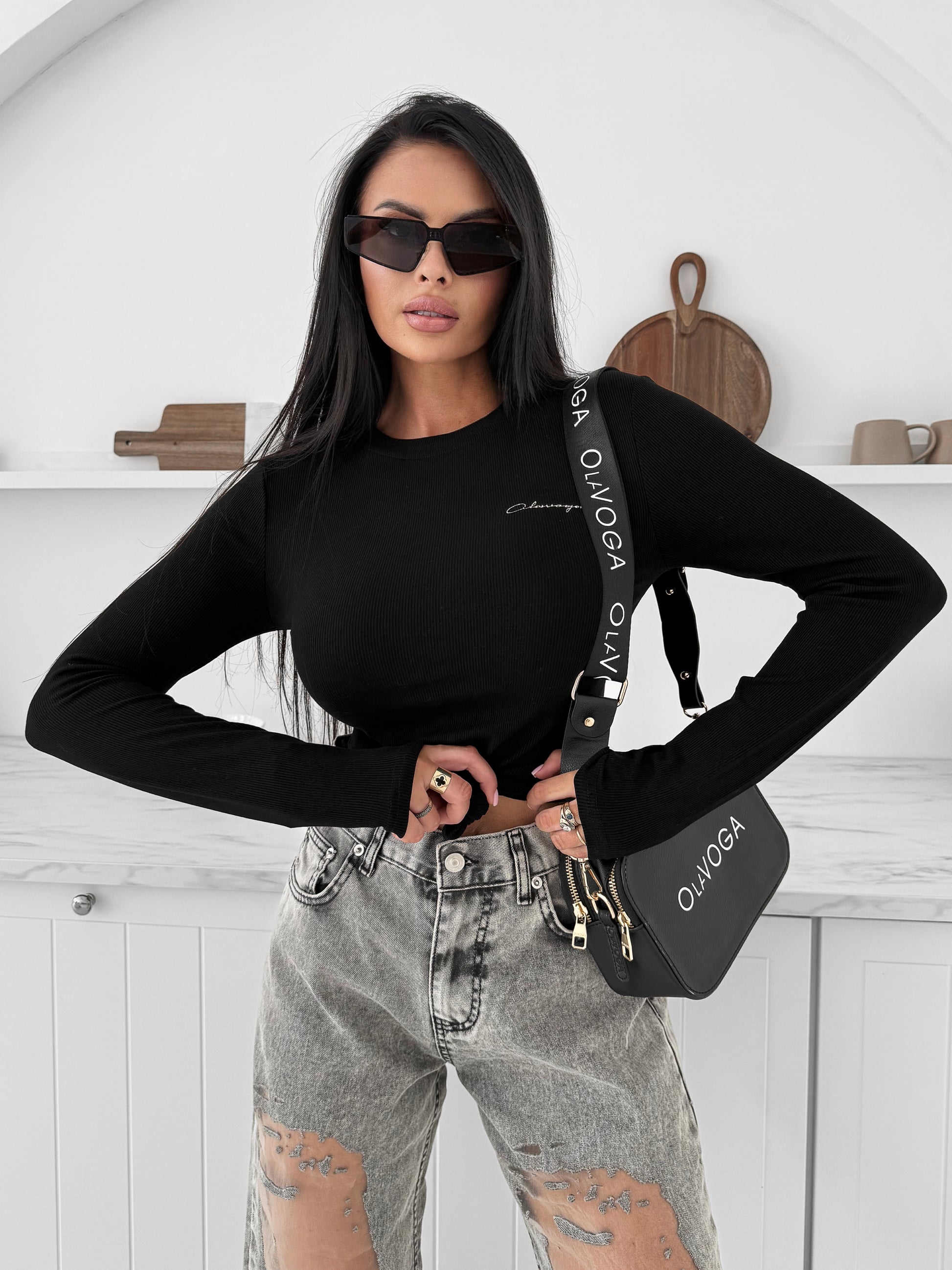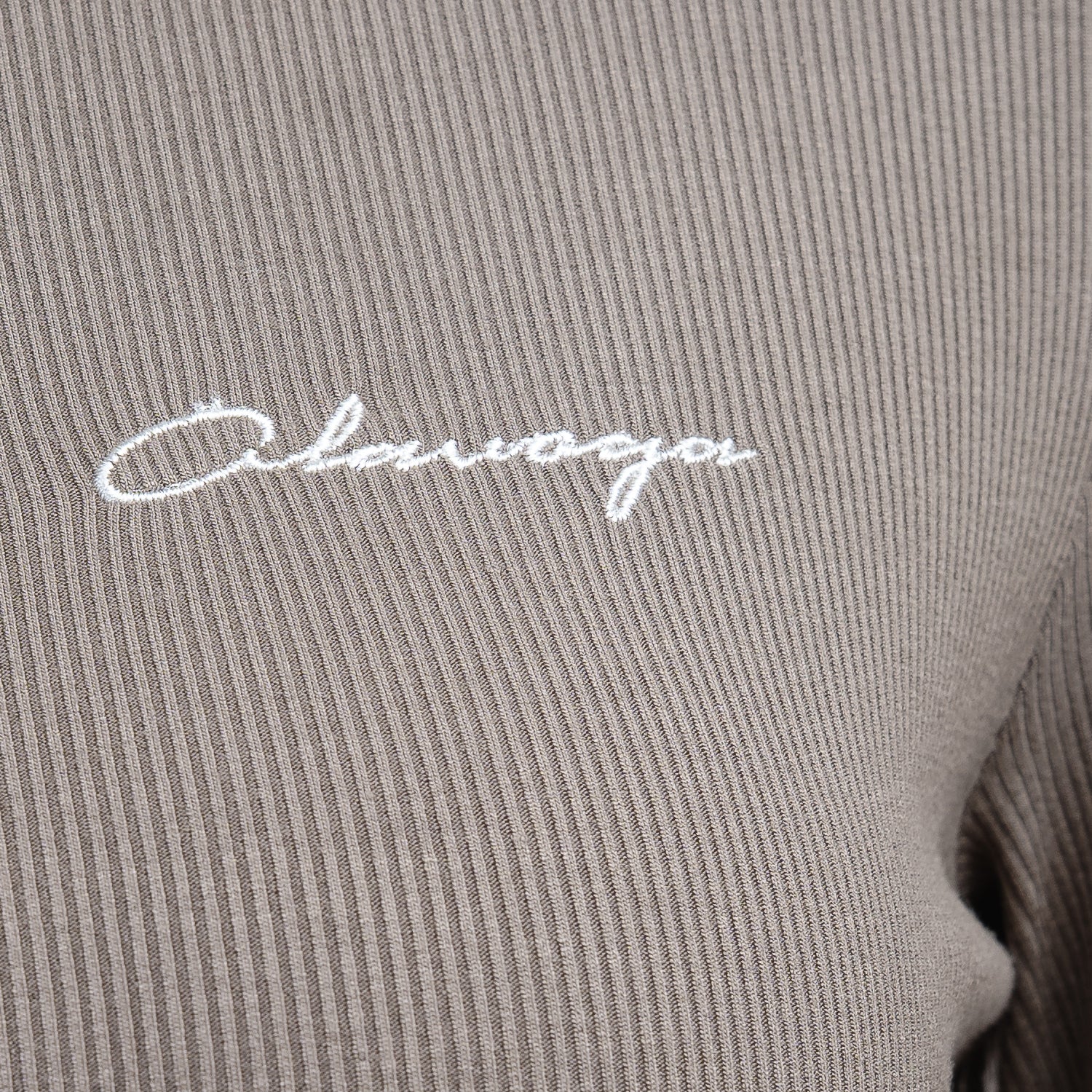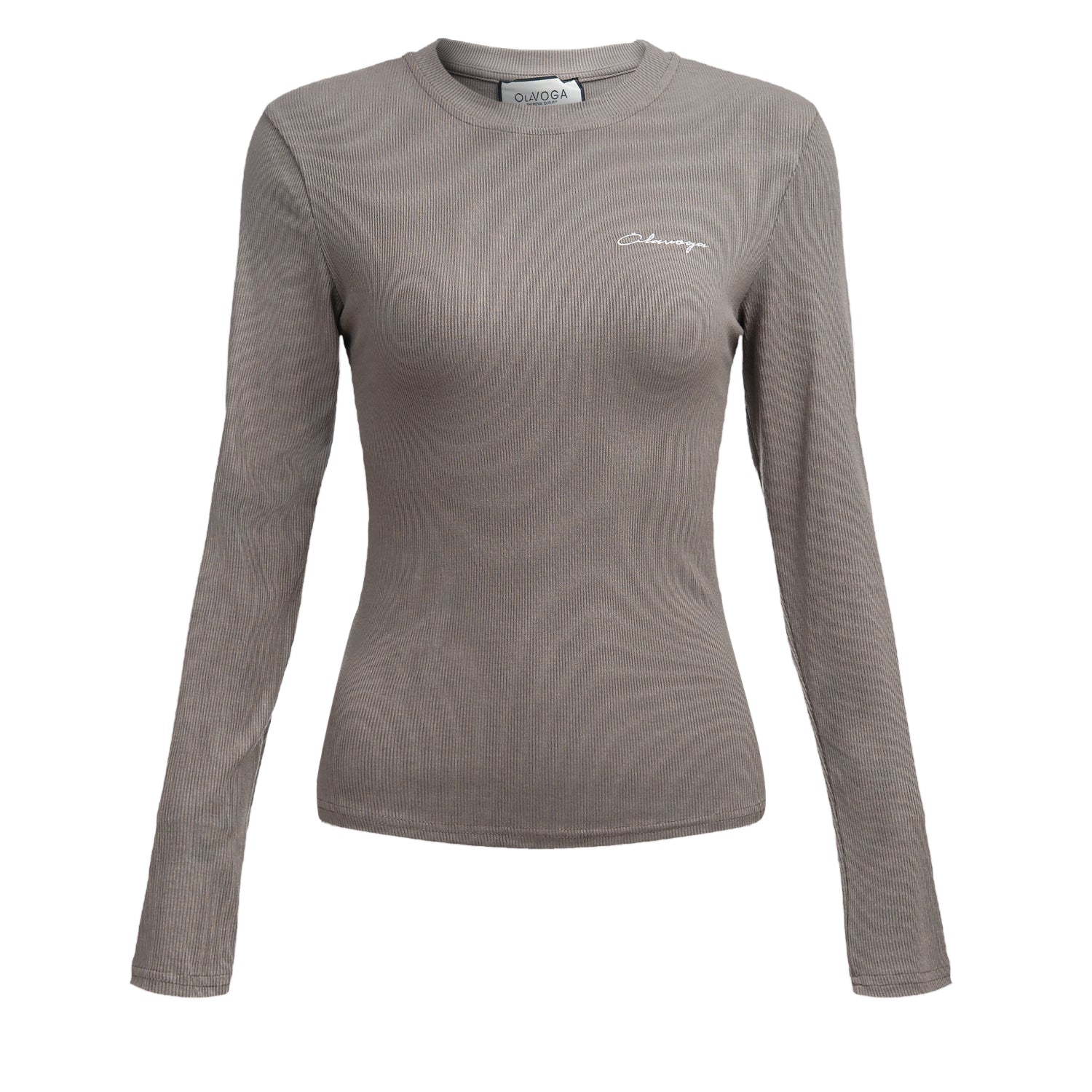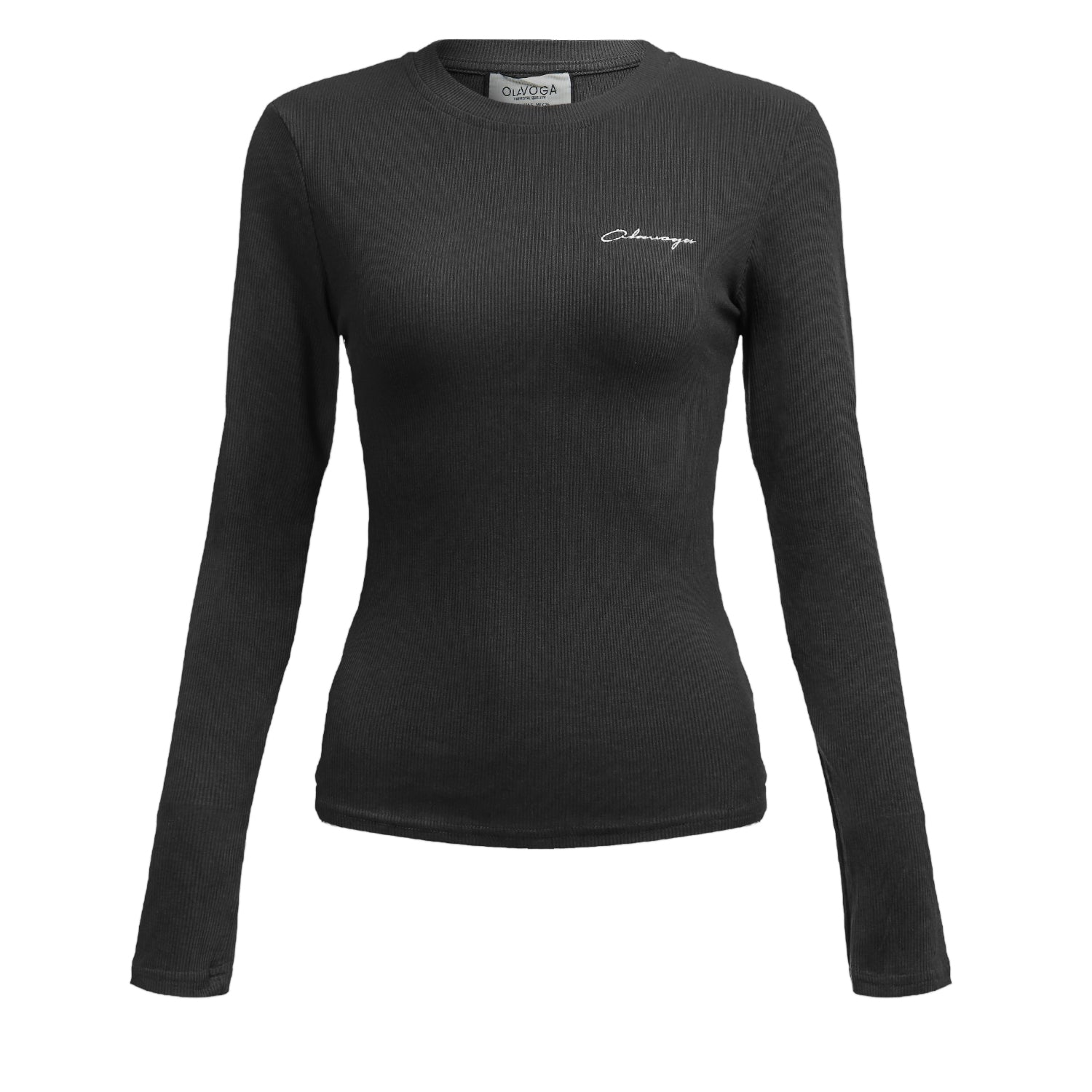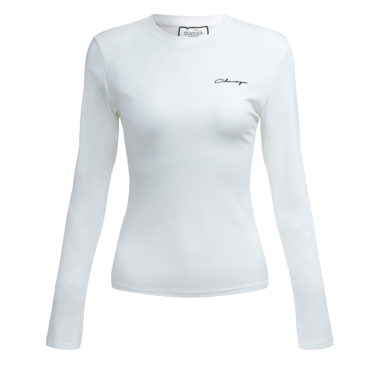 Women’s fitted long-sleeve top crafted from high-quality ribbed fabric with added viscose. Features an extended length and a contrasting script OLAVOGA logo on the front.
