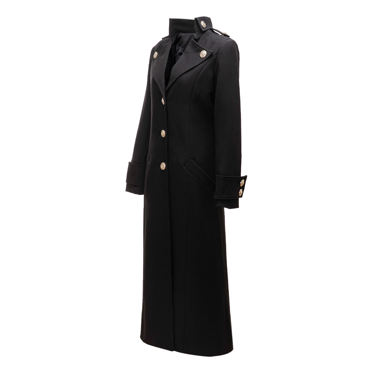 A long, relaxed-fit coat fastened with elegant buttons, crafted from premium-quality fabric. Designed with practical side pockets and shoulder pads that add a refined touch. The back is finished with a tonal OLAVOGA script logo matching the colour of the coat.