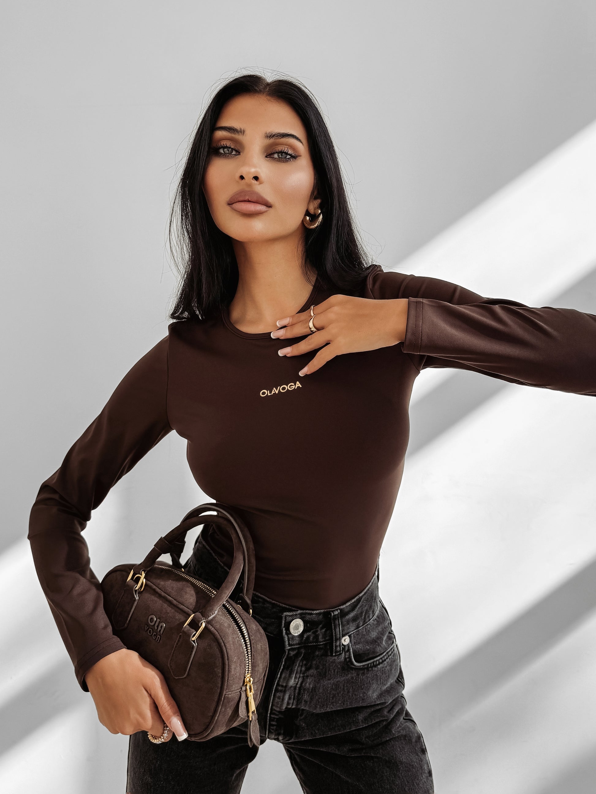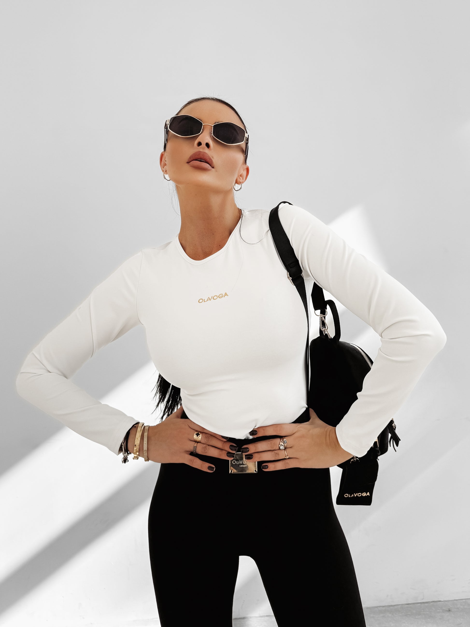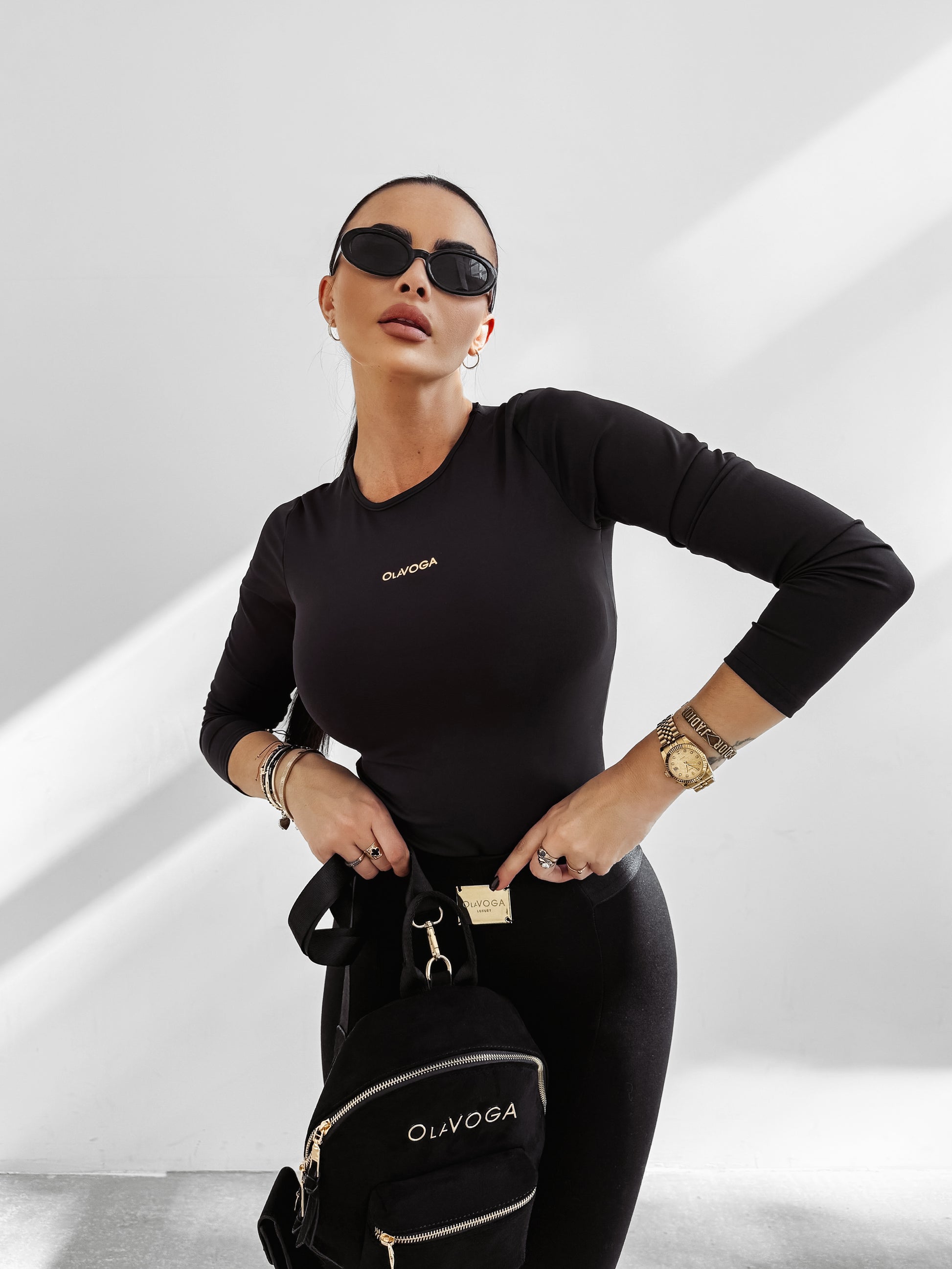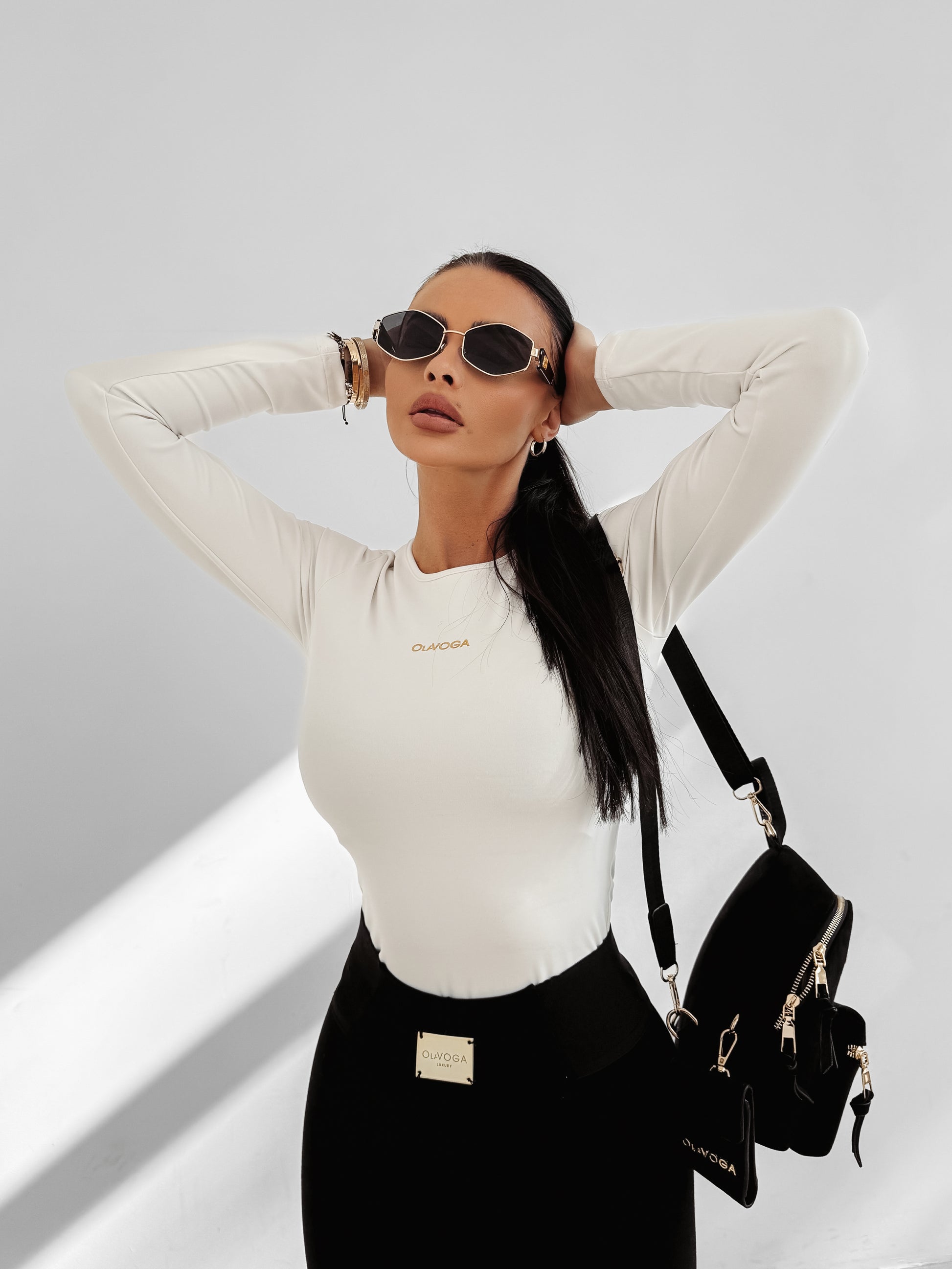 Fitted long-sleeve top with a minimalist design. Made of high-quality elastic fabric with a slightly longer cut. Features a subtle metallic OLAVOGA logo on the front.