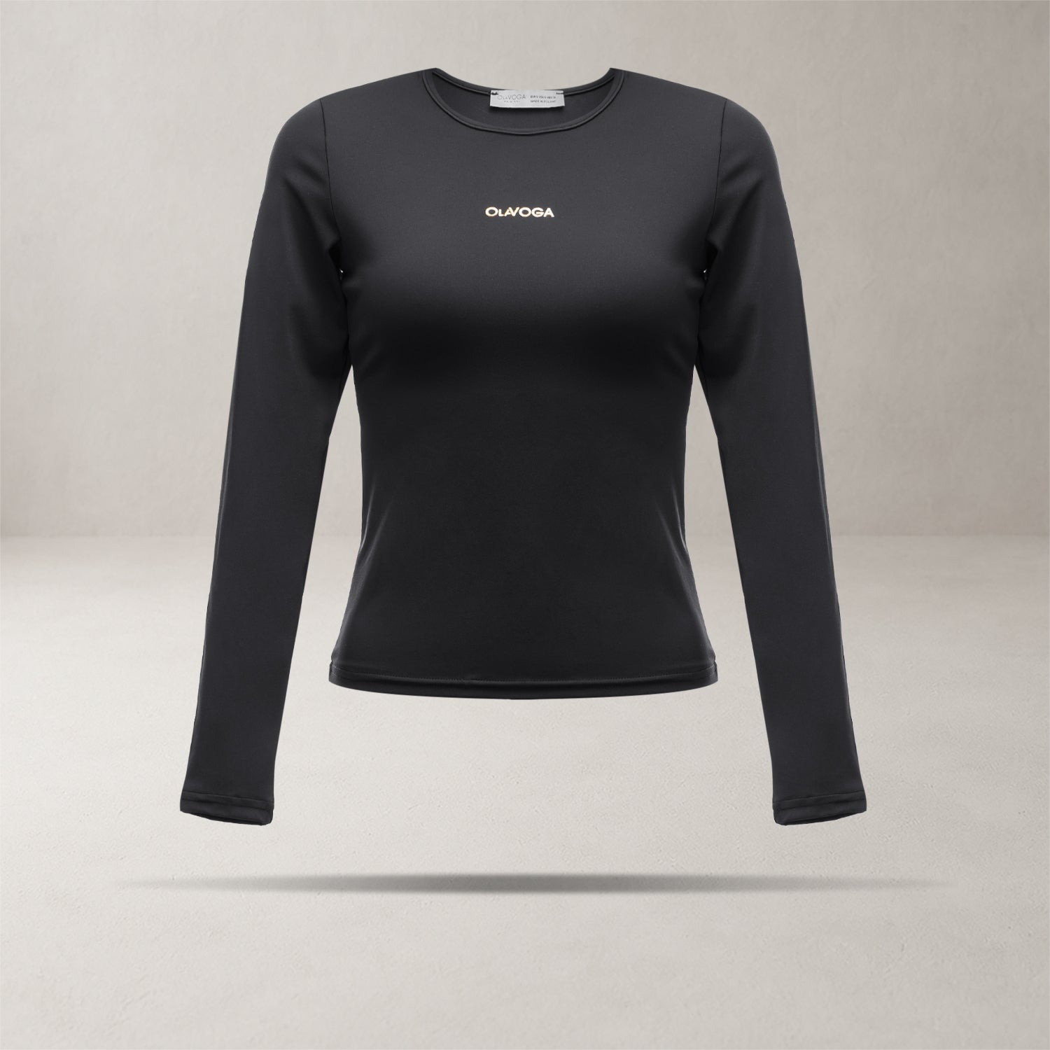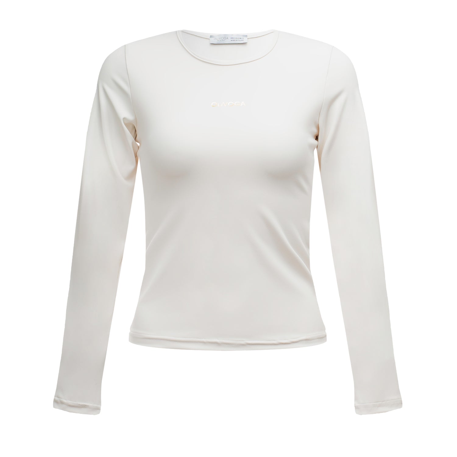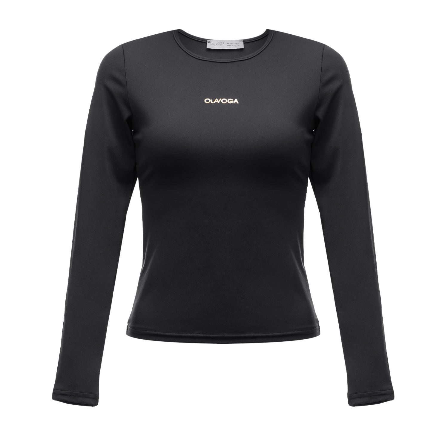A fitted long-sleeve blouse with a minimalist design. Made from high-quality, stretch fabric that ensures comfort and a flattering fit. Features a slightly longer cut and a subtle metallic OLAVOGA logo on the front for an elegant finish.