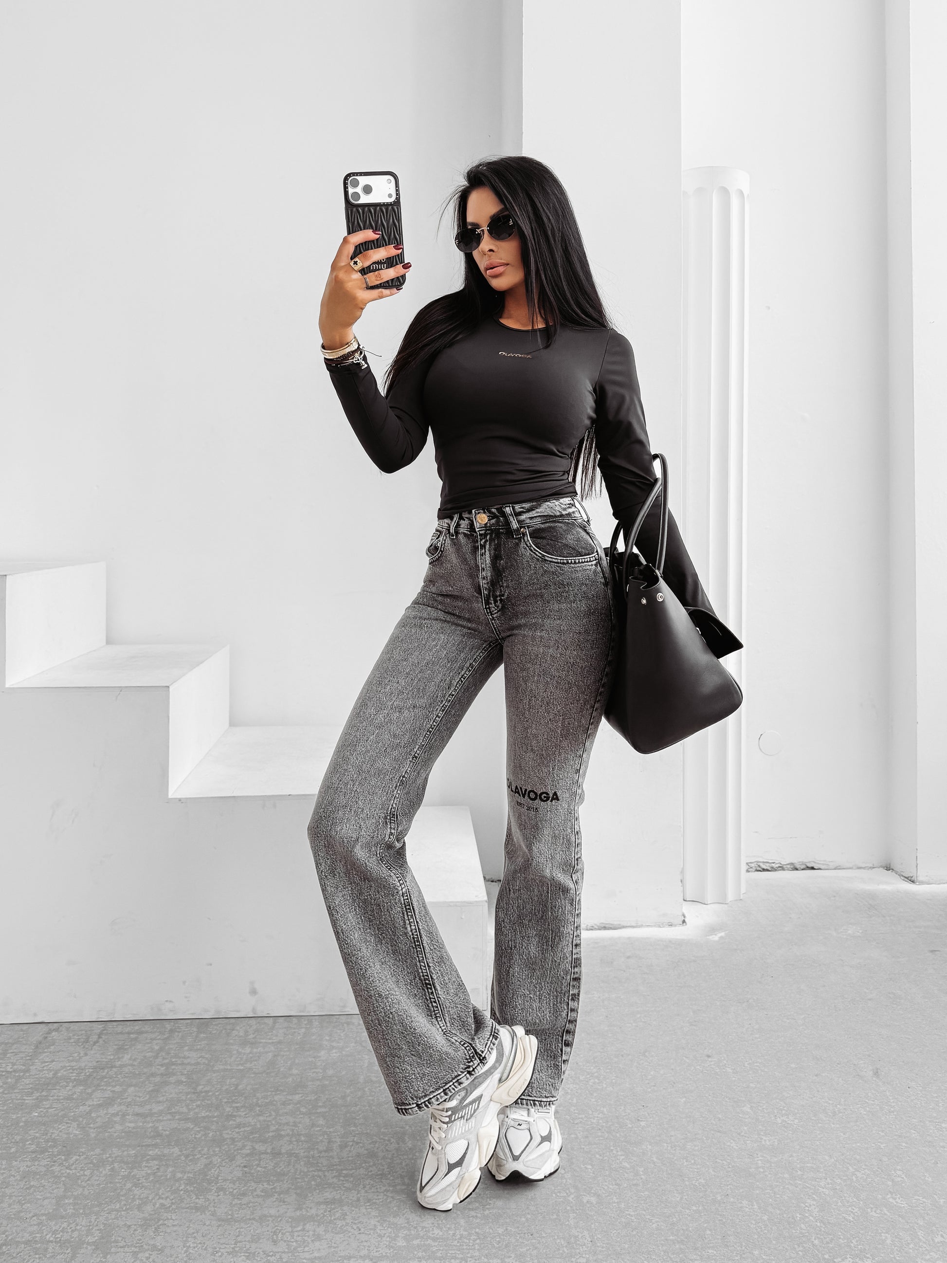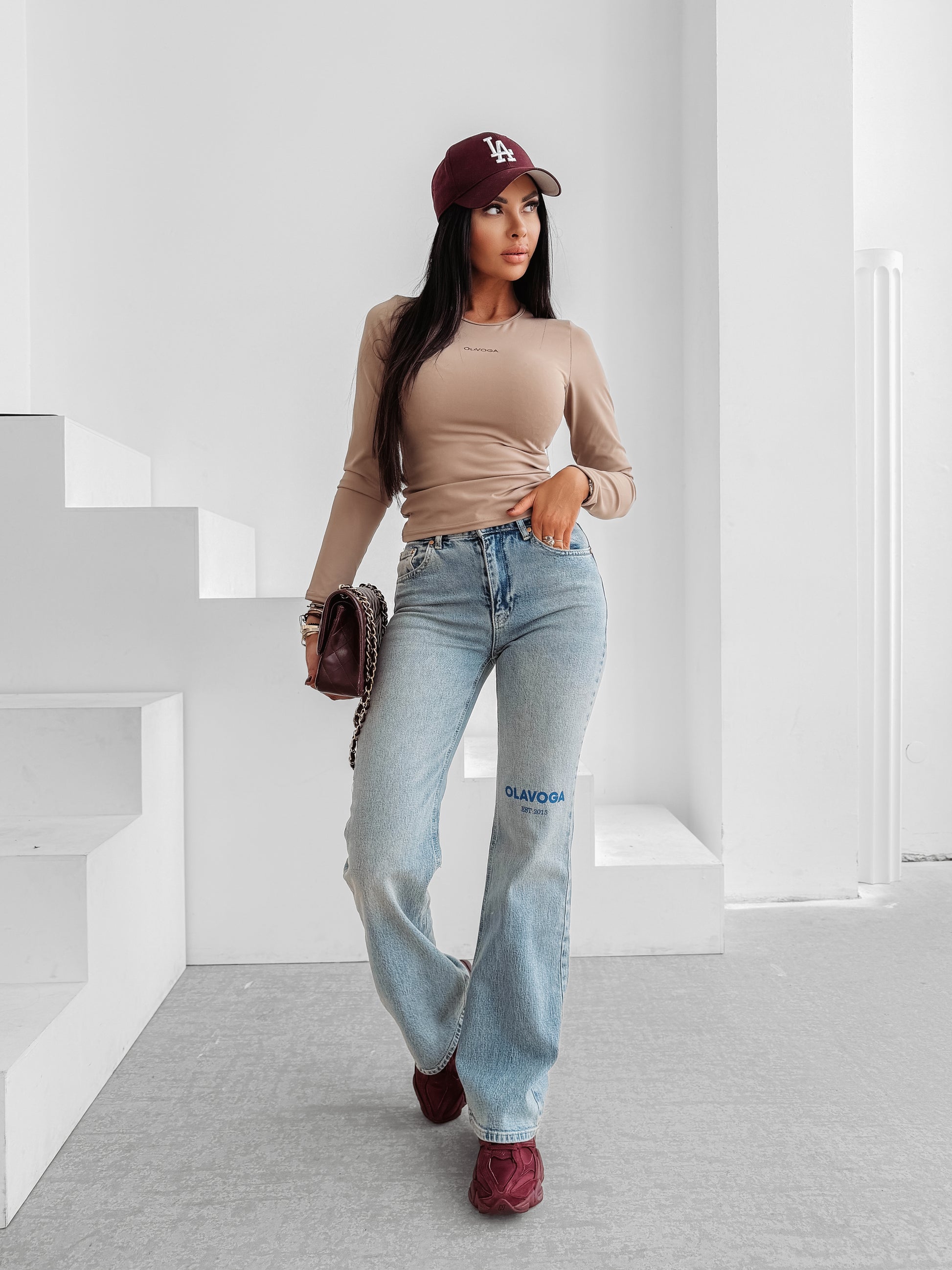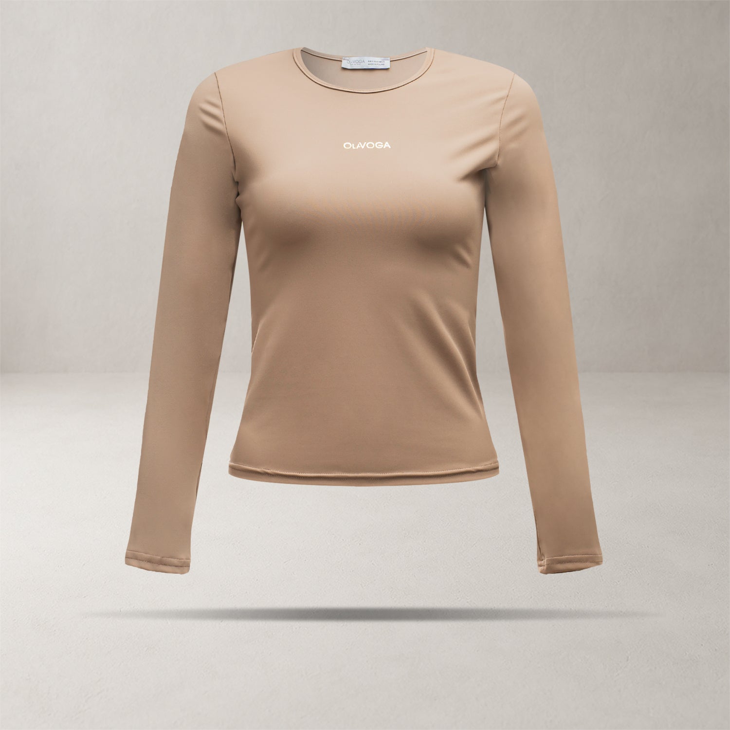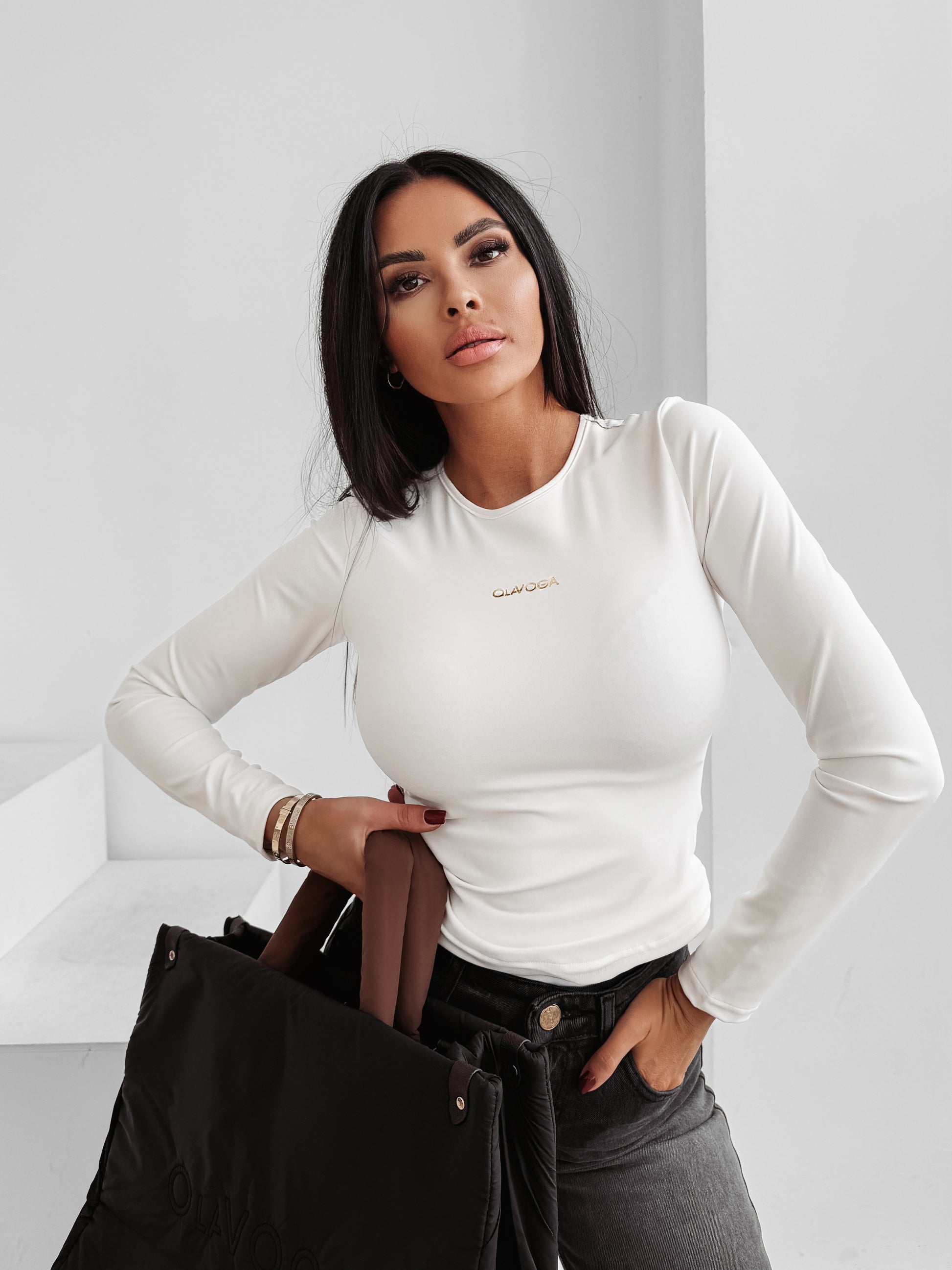A fitted long-sleeve blouse with a minimalist design. Made from high-quality, stretch fabric that ensures comfort and a flattering fit. Features a slightly longer cut and a subtle metallic OLAVOGA logo on the front for an elegant finish.