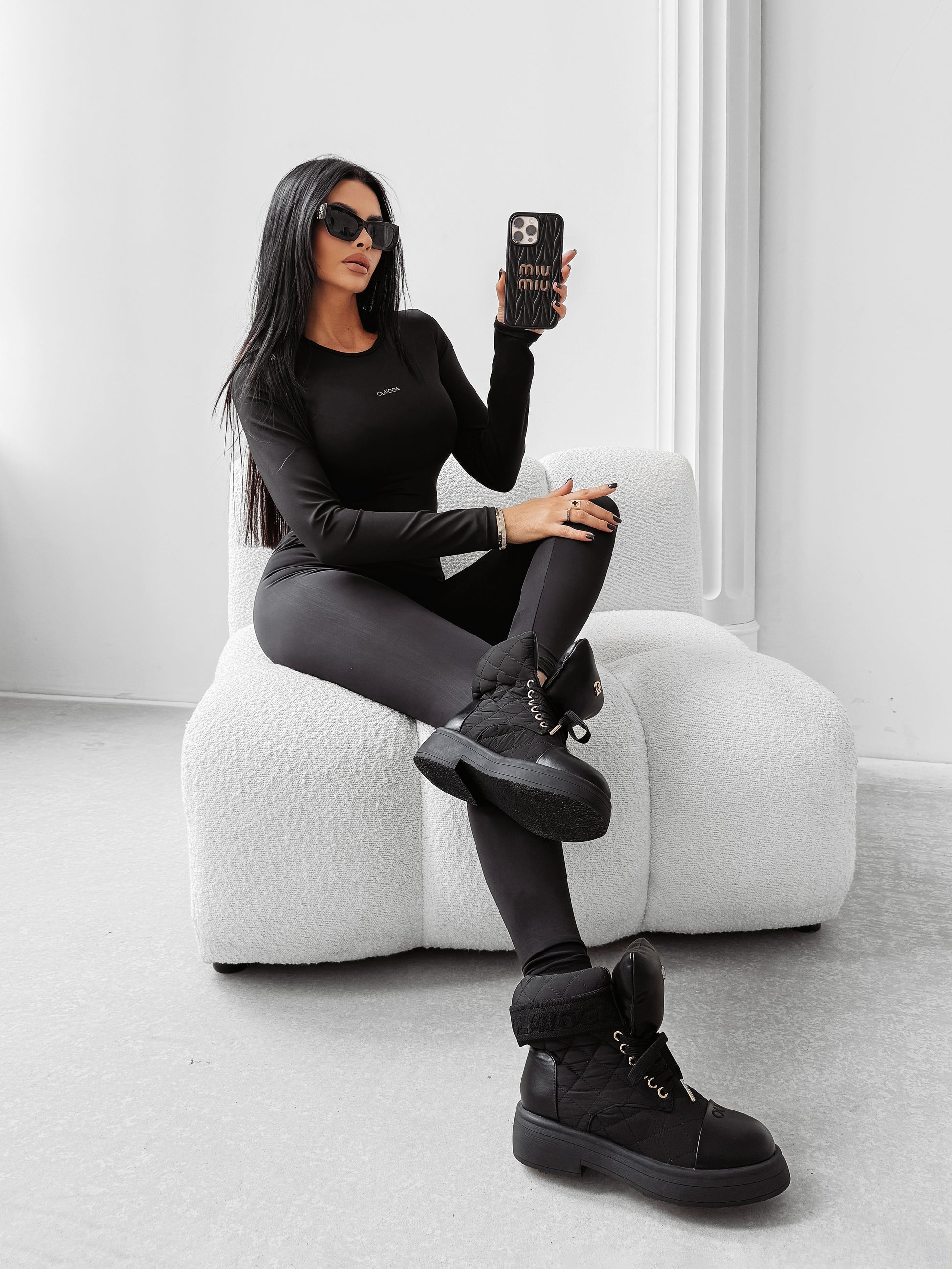 Perfectly fitted long-sleeve top with an extended cut, made from high-quality stretch fabric. Features a round neckline and minimalist OLAVOGA logo on the front. A timeless essential for both casual and elegant looks.