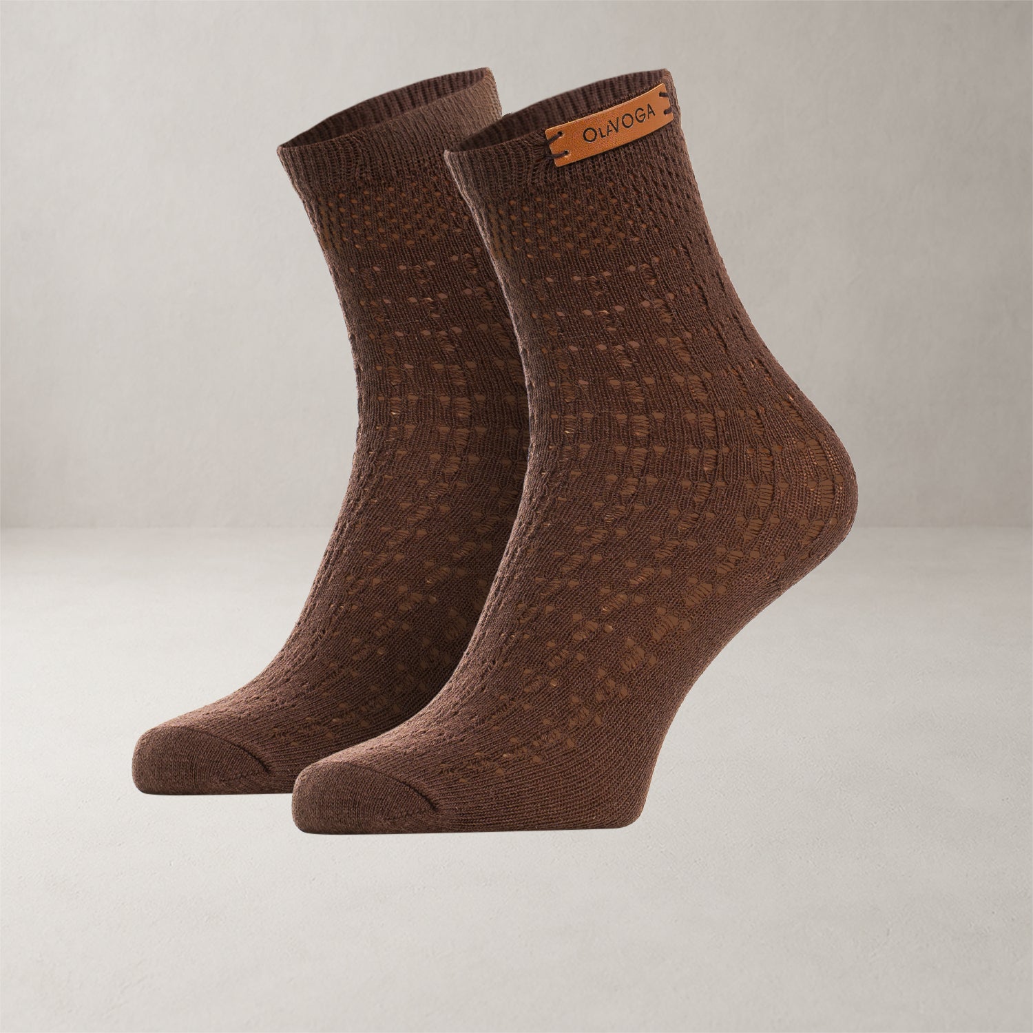 Soft and comfortable women’s socks made from high-quality knit fabric. Elastic and breathable, they adapt perfectly to the shape of the foot, providing all-day comfort. The top is finished with a leather patch featuring the embossed OLAVOGA logo.