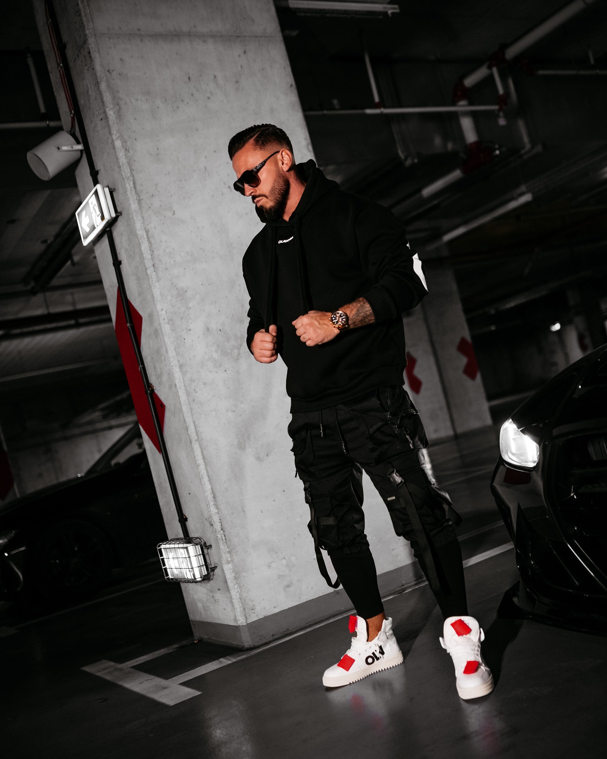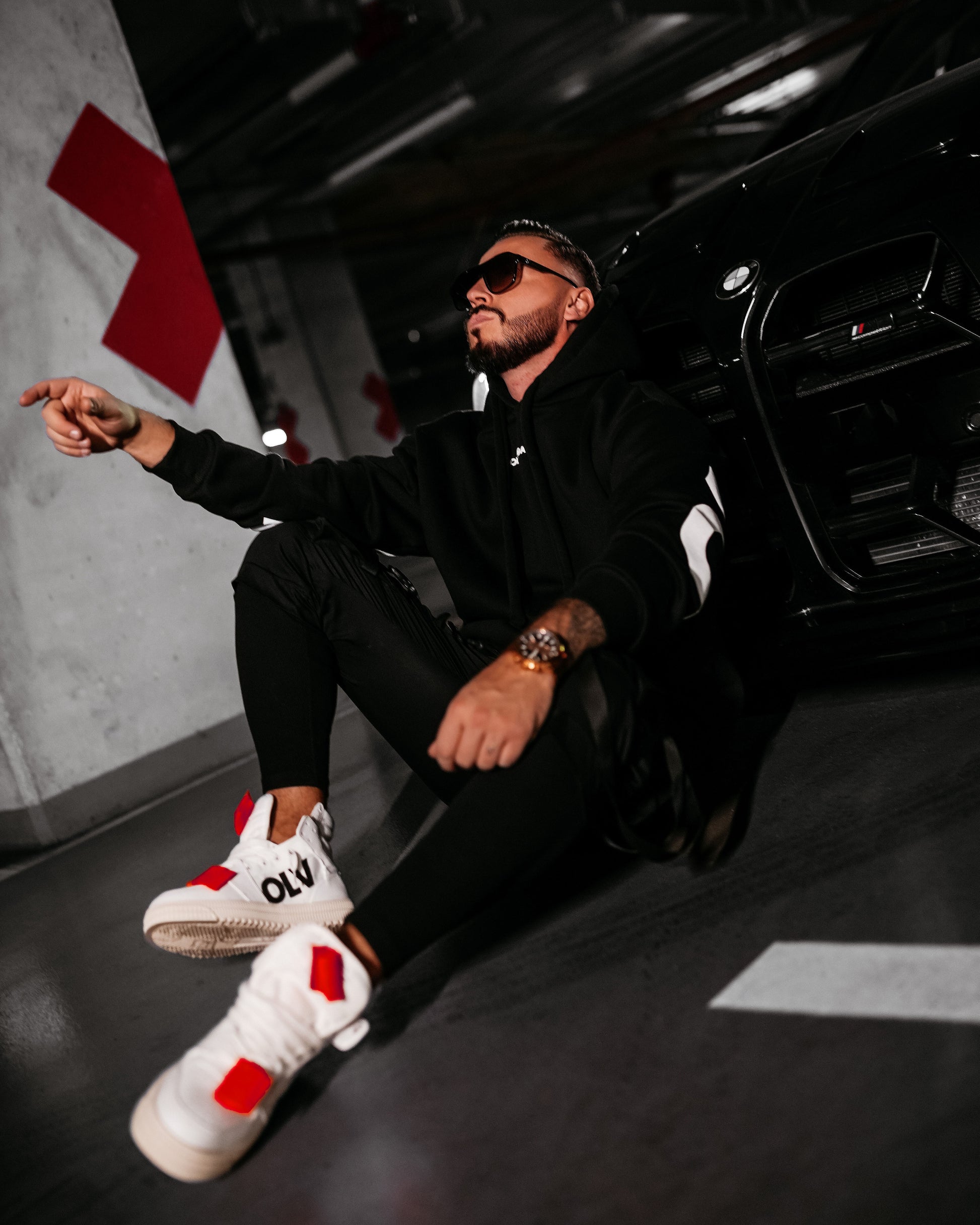 Features a minimal raised OLAVOGA logo on the front and a large, statement graphic logo on the back.