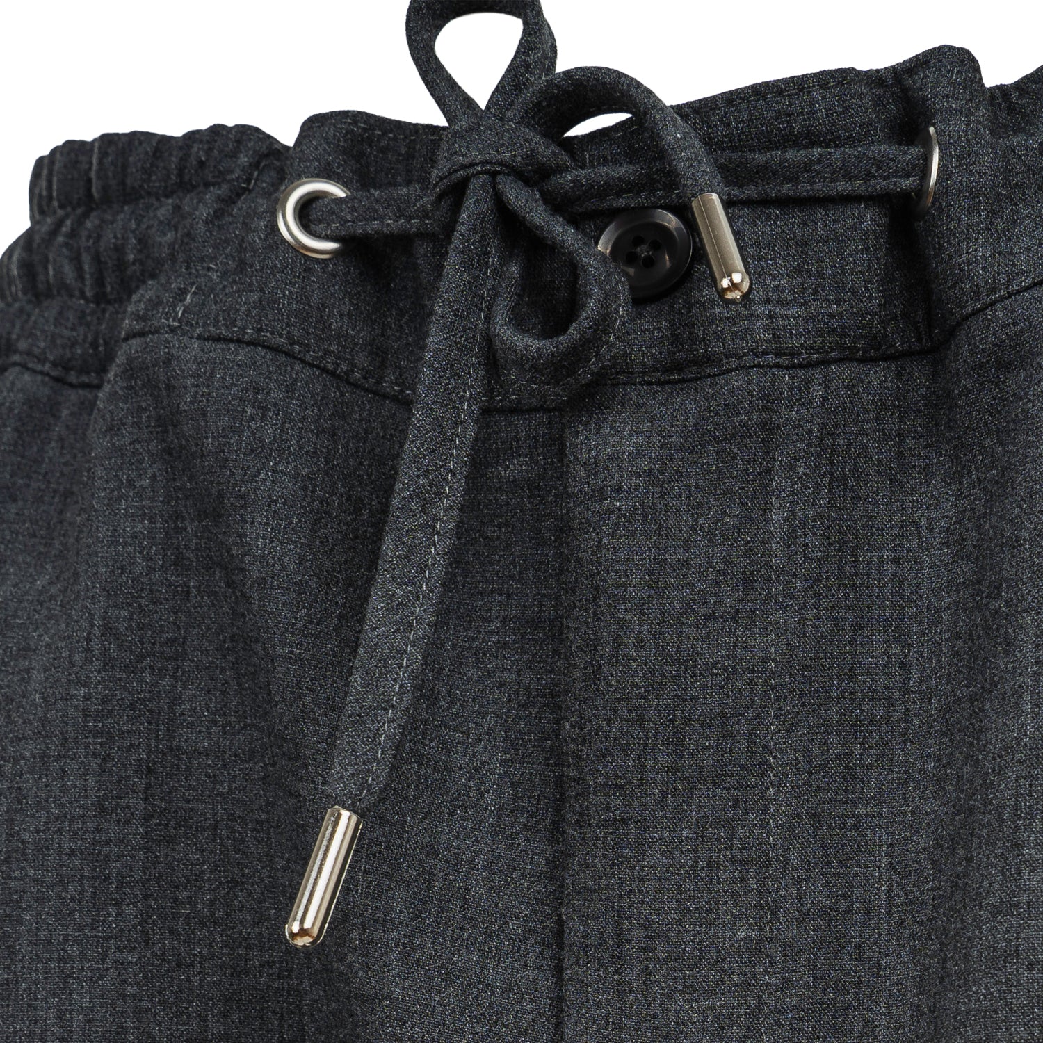 Bottom: High-waisted trousers with adjustable drawstring waist and discreet branding on the back. Finished with branded metal aglets for an elevated detail.